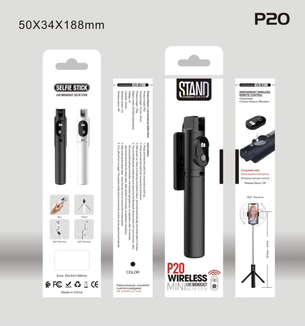 P20 Bluetooth Remote Control Selfie Stick Remote Control Separation Integrated Tripod Horizontal Photography and Vertical Photography Black and White Two Colors