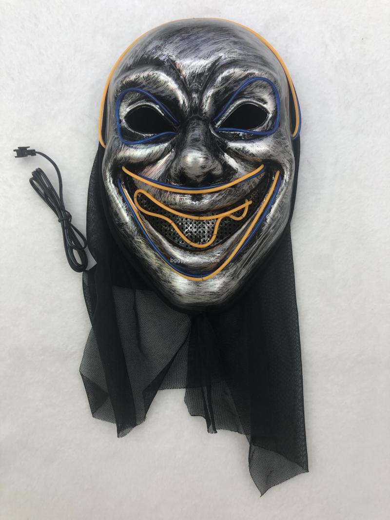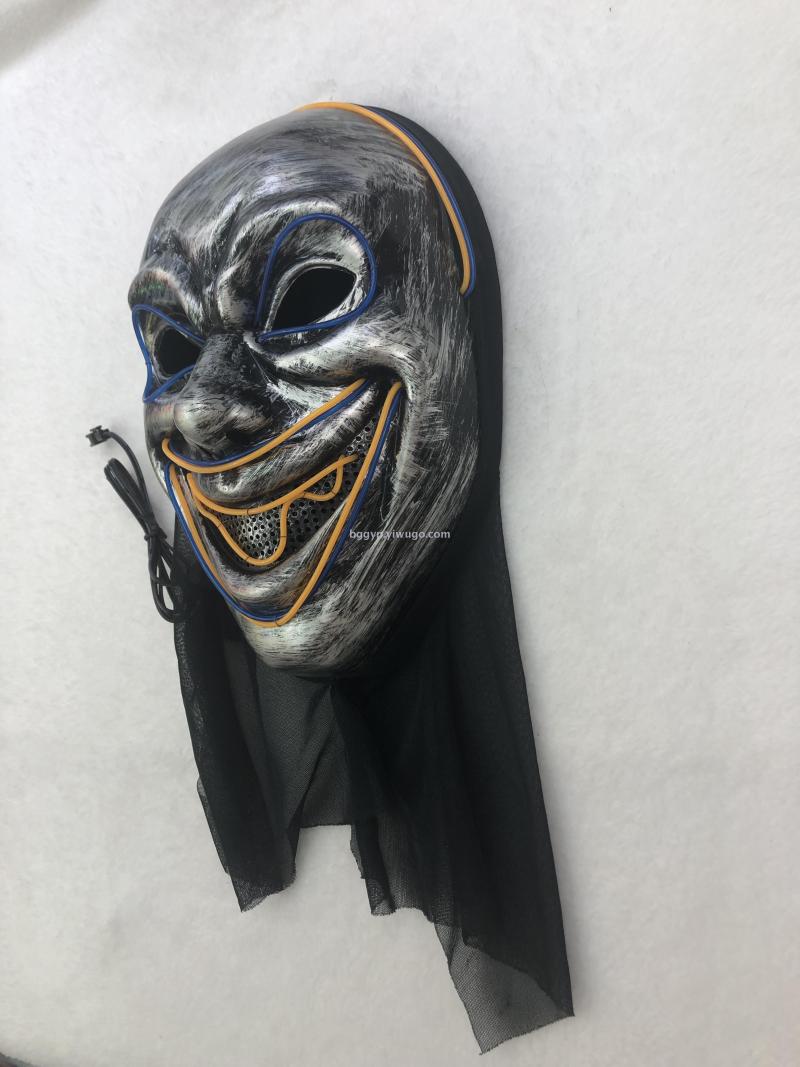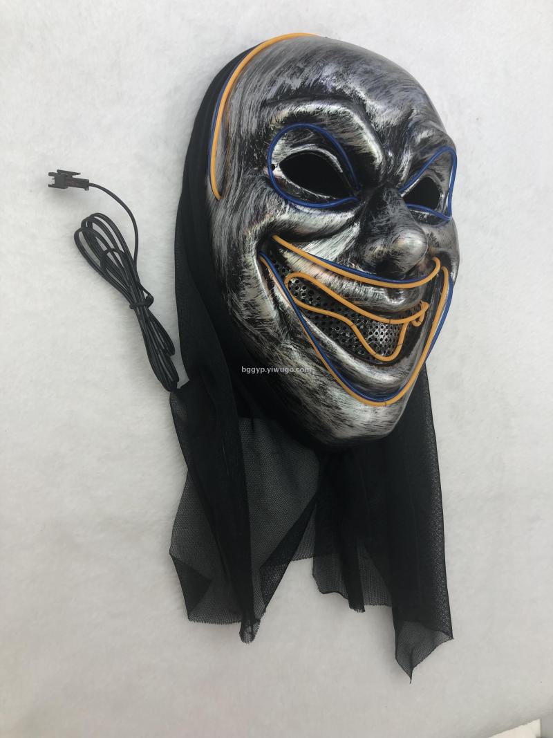 Two-Color Cold Light Glowing Devil Painted Clown Mask Halloween Ghost Festival Party Decoration Props
