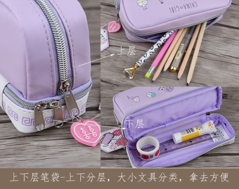 factory direct sales domestic and foreign trade new separated pencil case stationery bag multi-pocket layered storage cute fresh air