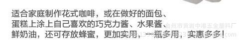 1.For squeezing various sauces(Tomato saucePlease provide the Chinese text you want to translate, and I will translate it into English for you.Soy saucePlease provide the Chinese text you want to translate, and I will translate it into English for you.Salad dressingPlease provide the Chinese text you want to translate, and I will translate it into English for you.Chocolate saucePlease provide the Chinese text you want to translate, and I will translate it into English for you.Jams and preserves")