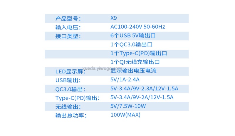 QC3.0 output voltage: 5V/9V/12V