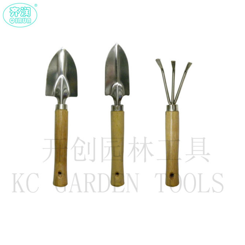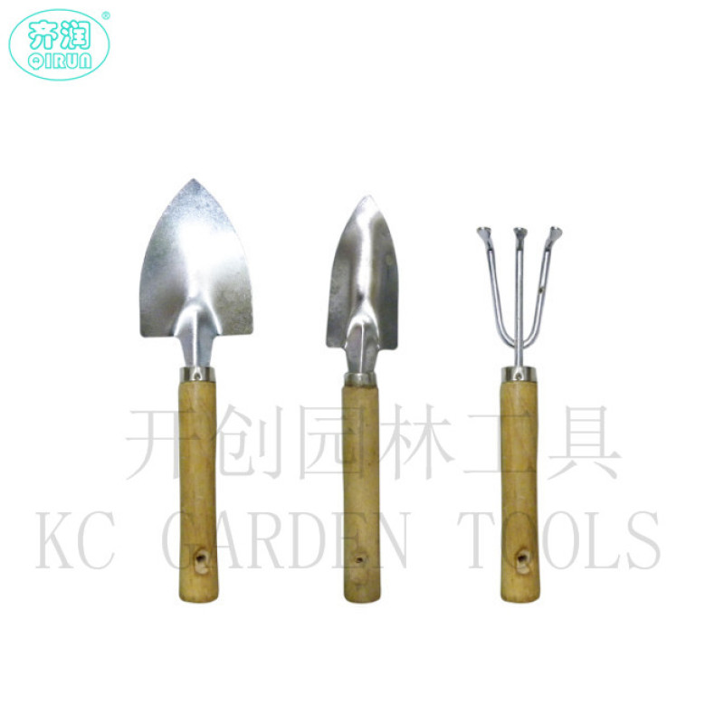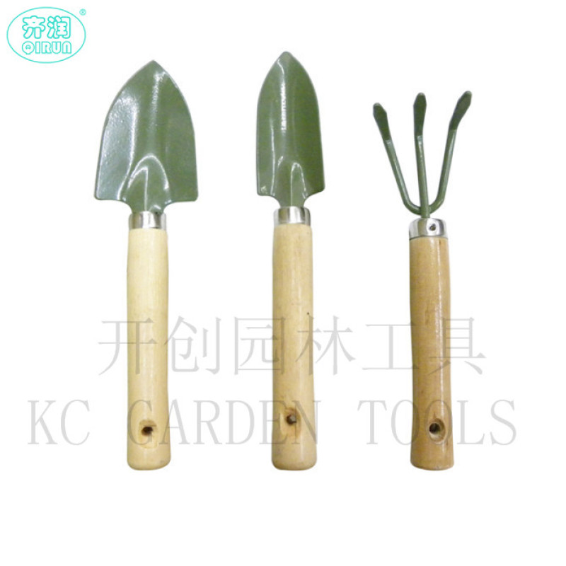 Garden tools three-piece set with wooden handle mini spade/rake/spade plant potted plant gardening tool1