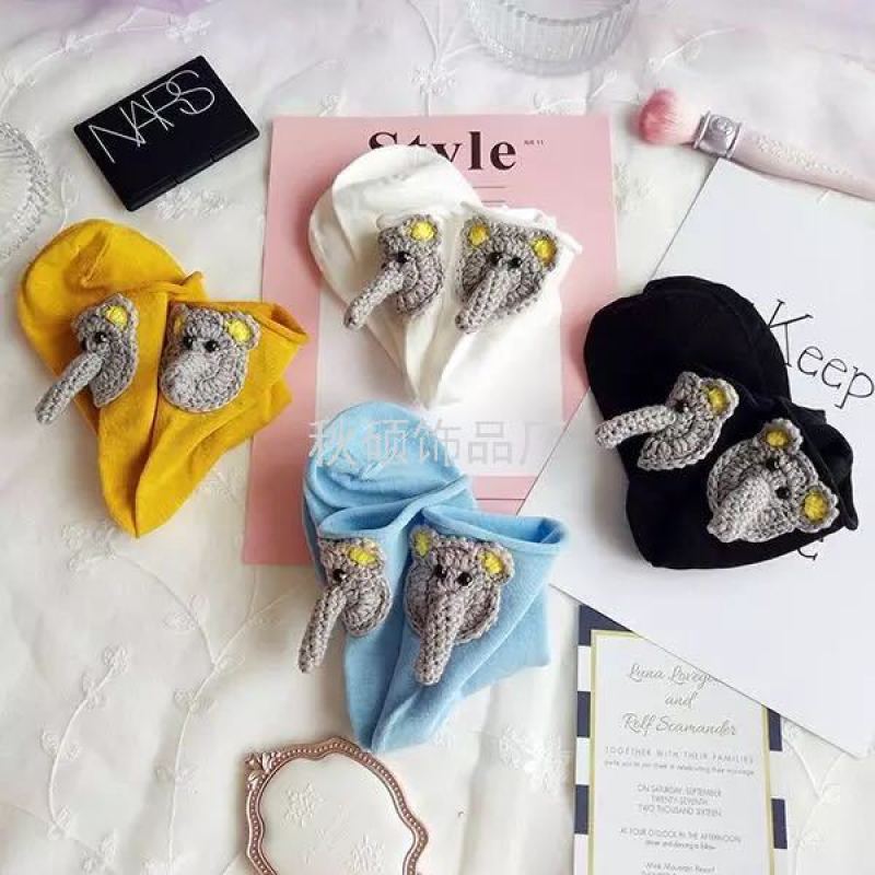 Hand-made crocheted cartoon animal elephant candy color multicolor loose-necked crimped student lady sock accessory [81]