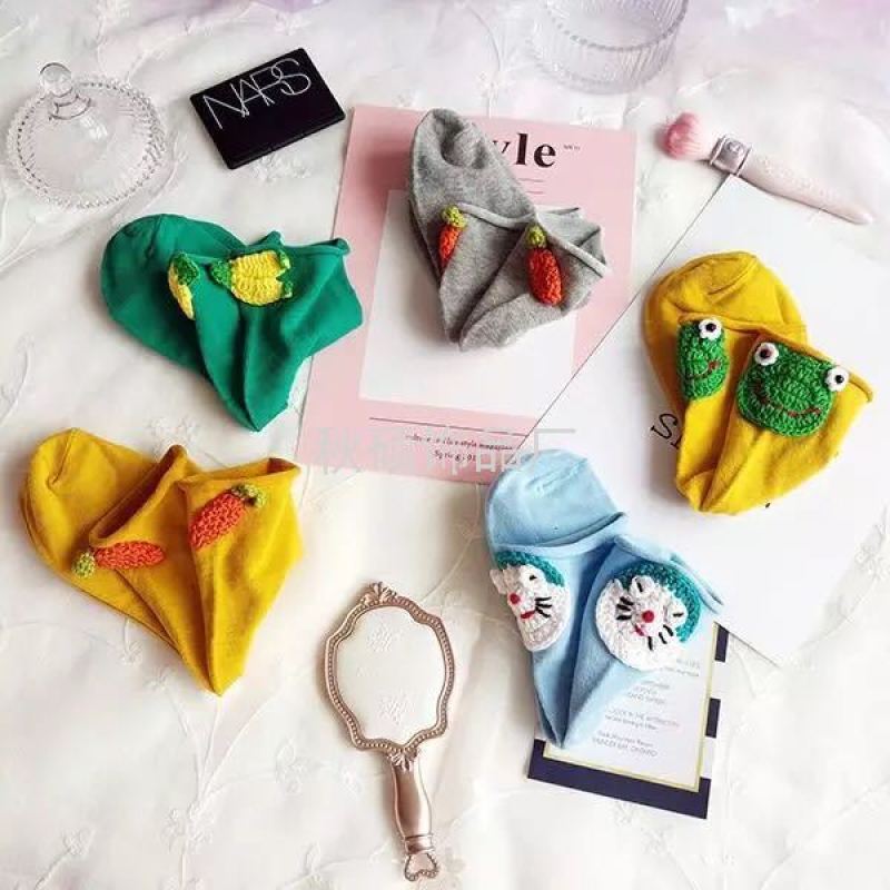 About Product:Hand-made crocheted cartoon animal elephant candy color multicolor loose-necked crimped student lady sock accessory [81]