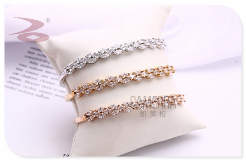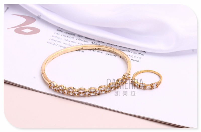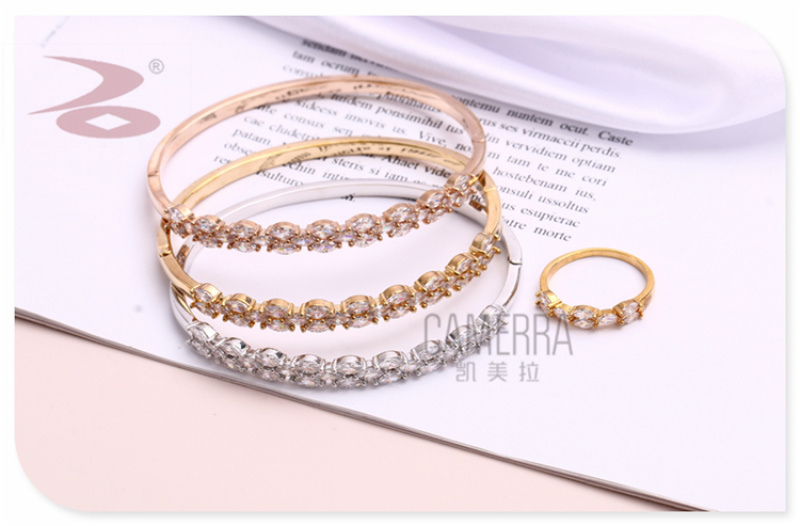 产品名称:小麦颗形状水钻微镶女士手环戒指套装 日韩版简约金银玫瑰金三色