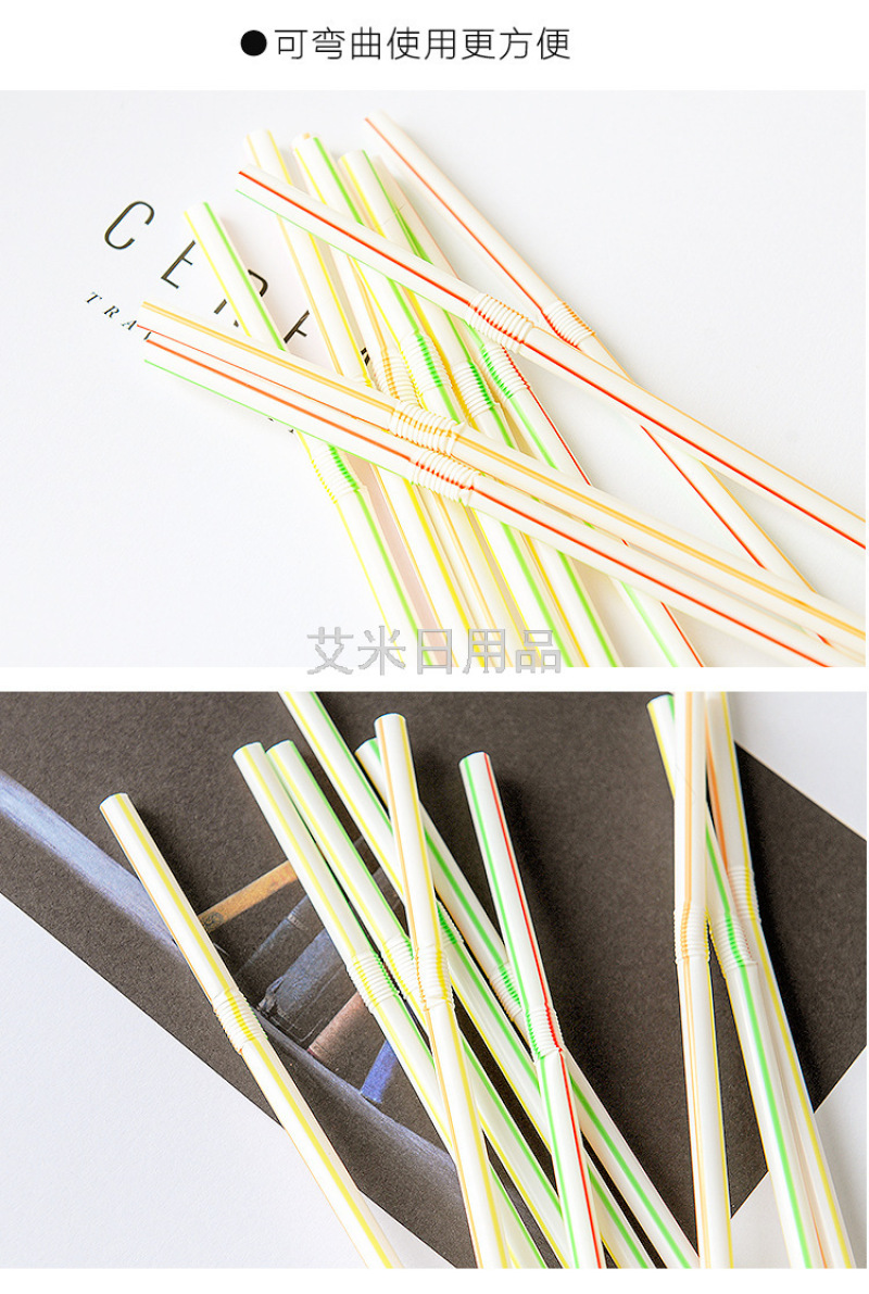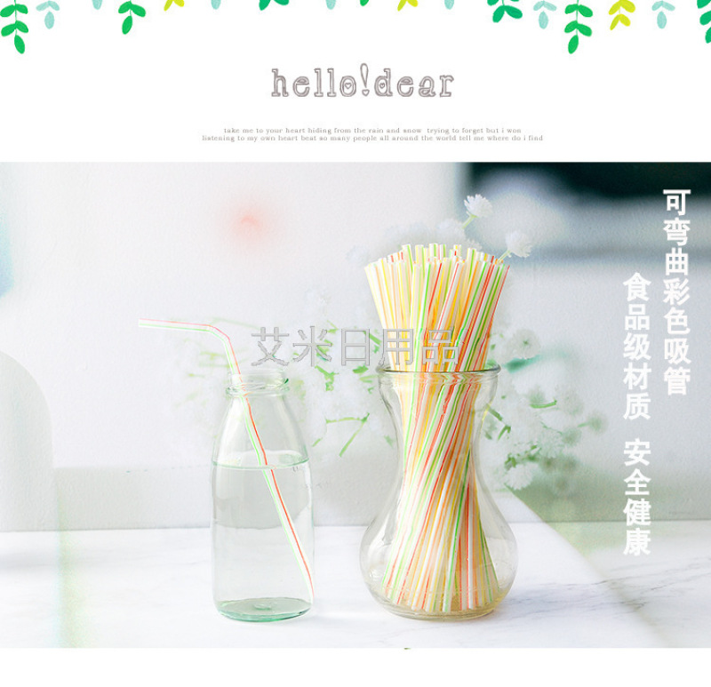 Disposable plastic straw with colored elbow lengthened flexible juice drink milk tea straw
