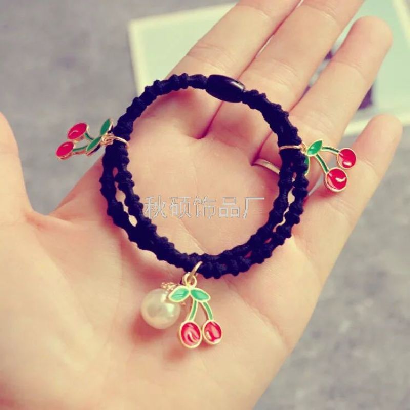 Hair accessories Vintage alloy banana cherry fruit Pearl pendant head rope hair rope hair ring [93]