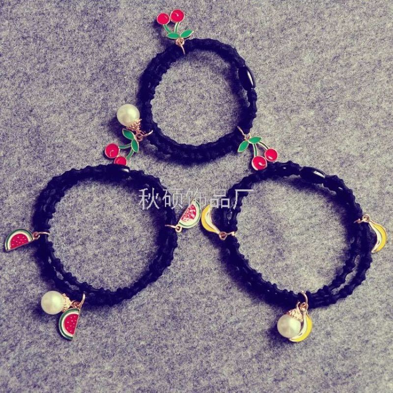 About Product:Hair accessories Vintage alloy banana cherry fruit Pearl pendant head rope hair rope hair ring [93]
