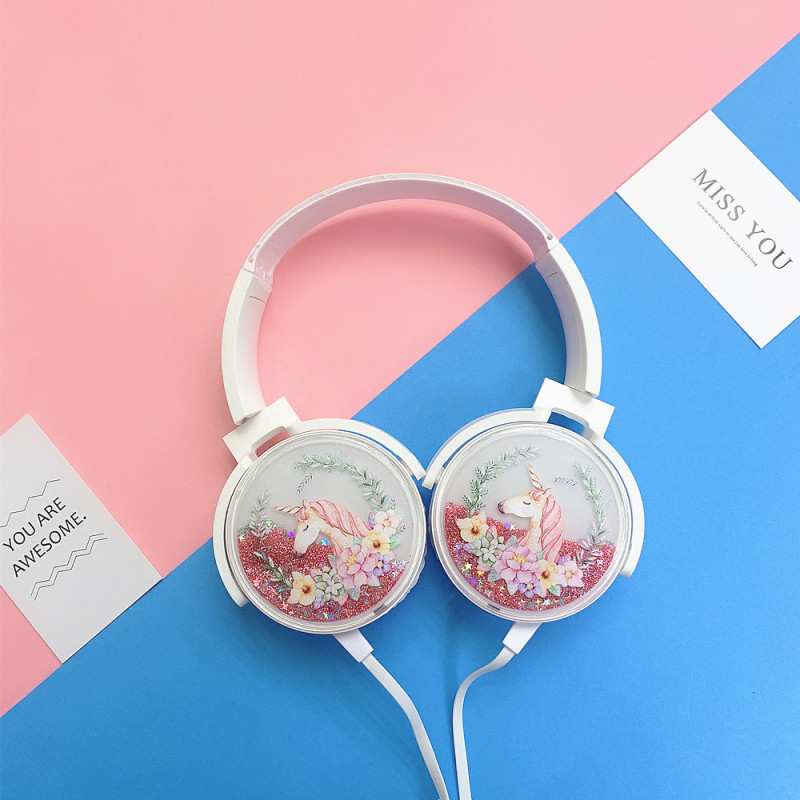 Popular quicksand headset cartoon bluetooth/plug line series customized voice call LOGO..