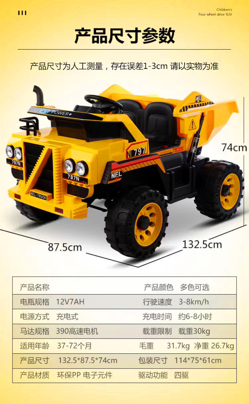 Bird King - Children's Electric Engineering Vehicle. Colors: Red, Green, YellowThis product is primarily supplied to export companies and directly purchased by foreign businesses. Our factory is a production enterprise with the right to independently import and export. We can offer FOB Tianjin Port, accept US dollars, and provide OEM sample processing and branding services! The company's brand trademarks are: "Bird King" and "Oralma".