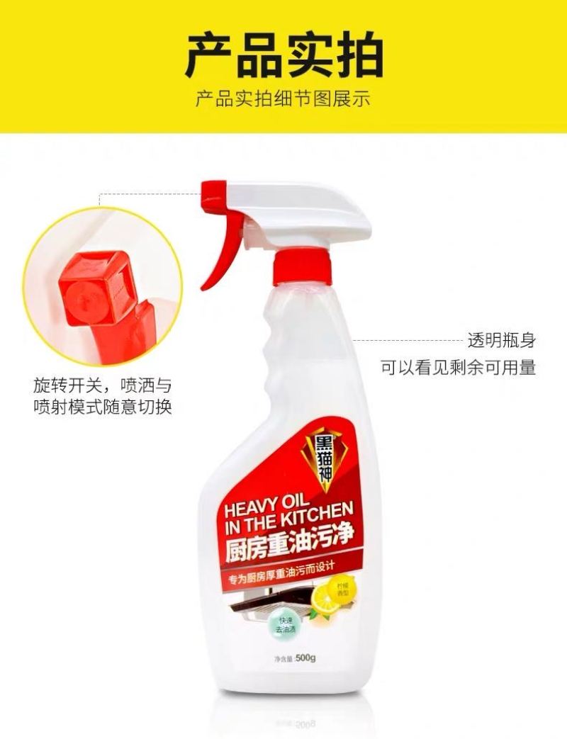 Black Cat God kitchen heavy range hood powerful oil pollution cleaning spray lemon flavor 500ml