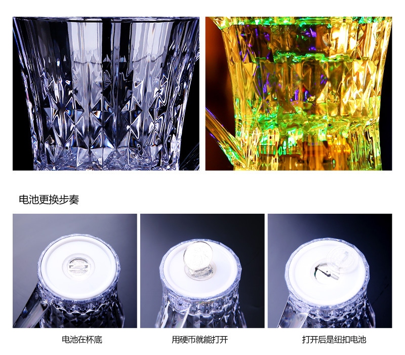 新一代的发光酒杯可以更换电池了,晚上更绚 更亮 更high