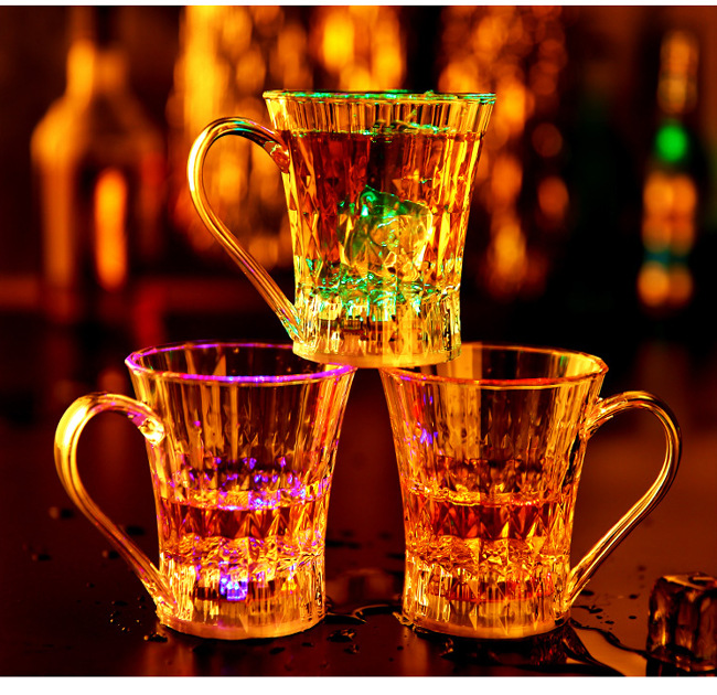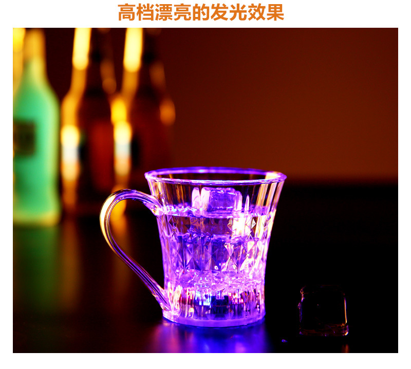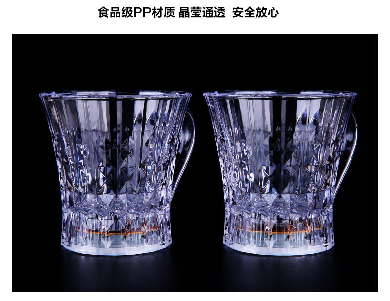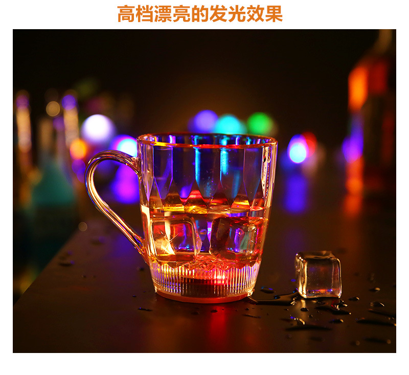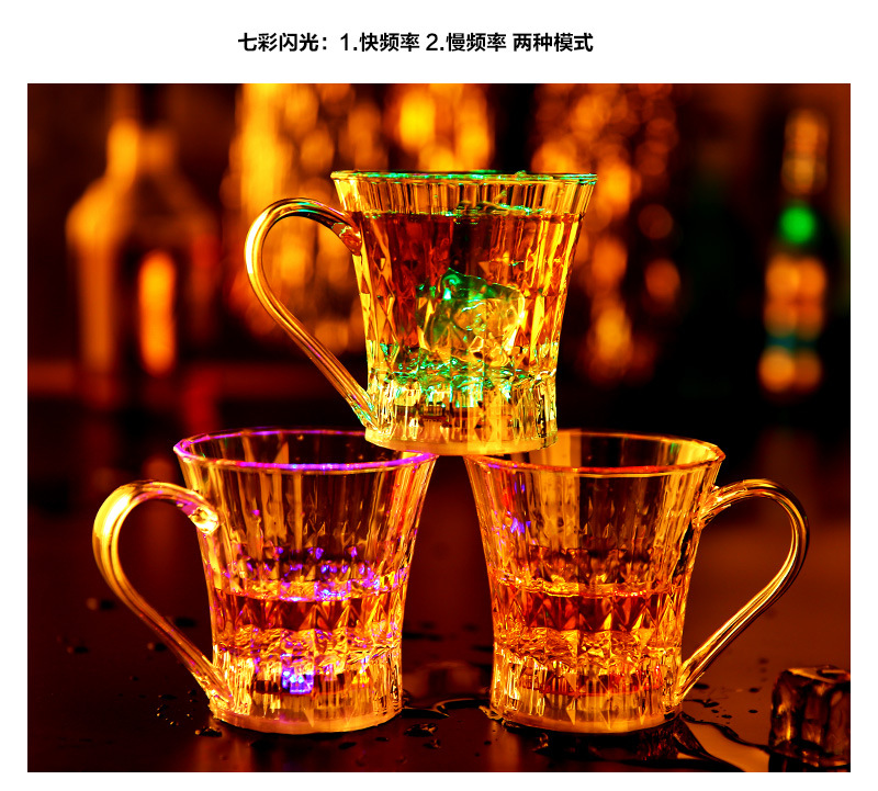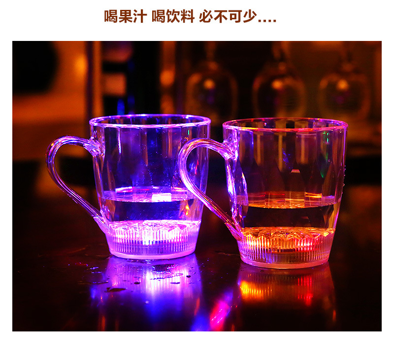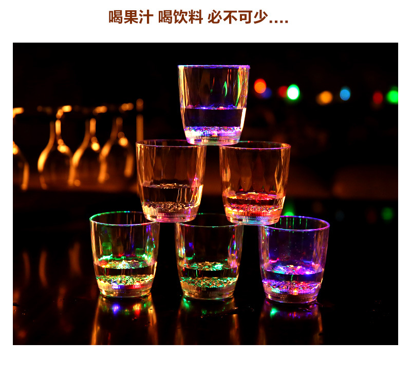 杯子为环保透明发光杯,本身是透明杯倒入液体(水、饮料、啤酒等)就发光,适合庆祝,派对、酒吧、馈赠等。非常新颖有趣。