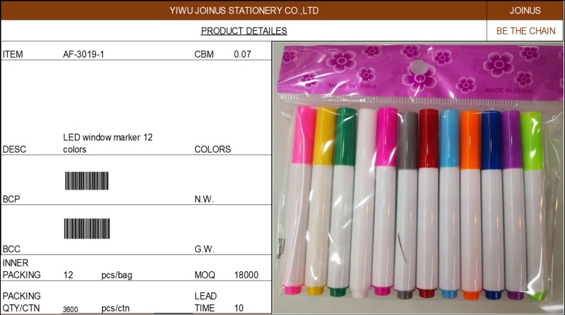 About Product:玻璃荧光笔LED window marker 12 colors AF-3019-1