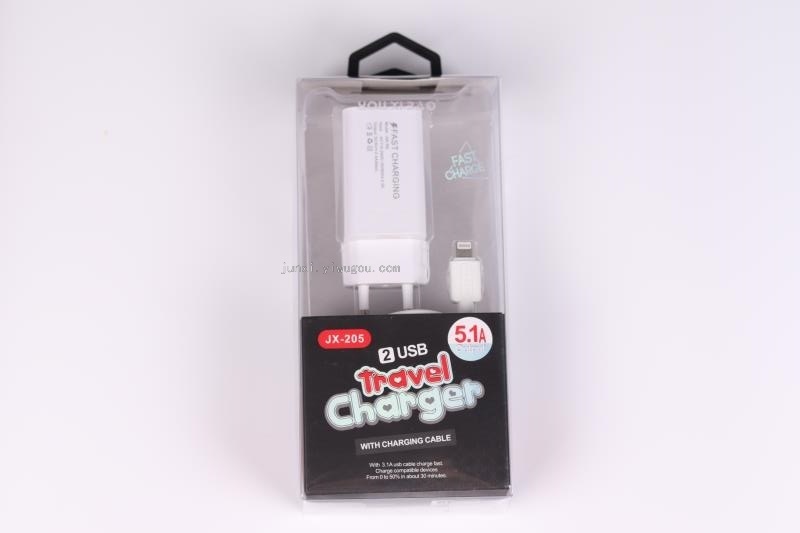 factory wholesale qc 3.0 fast charge charger data cable 2-in-1 suit mobile phone charging plug jx-205
