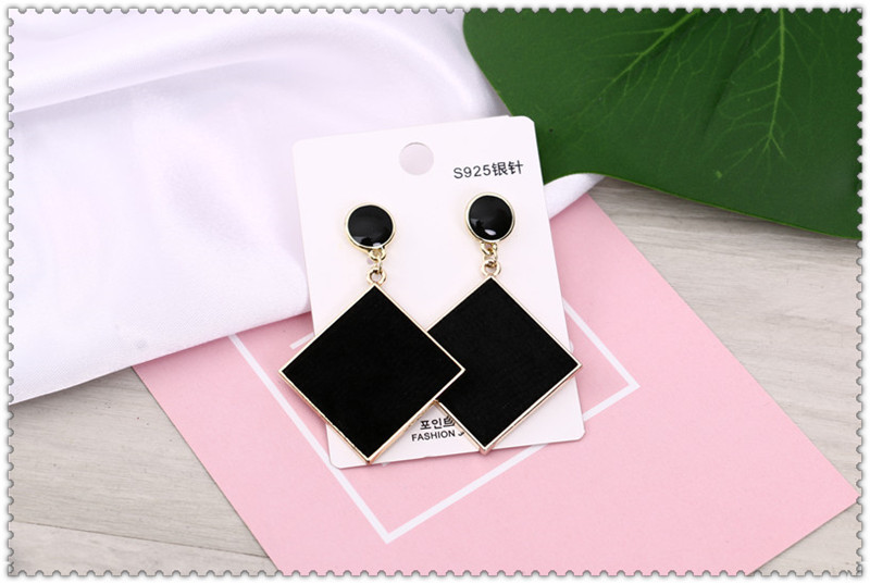 korean style fashion stud earrings women's anti-allergy silver pin eardrops geometric square earrings fashion ornament