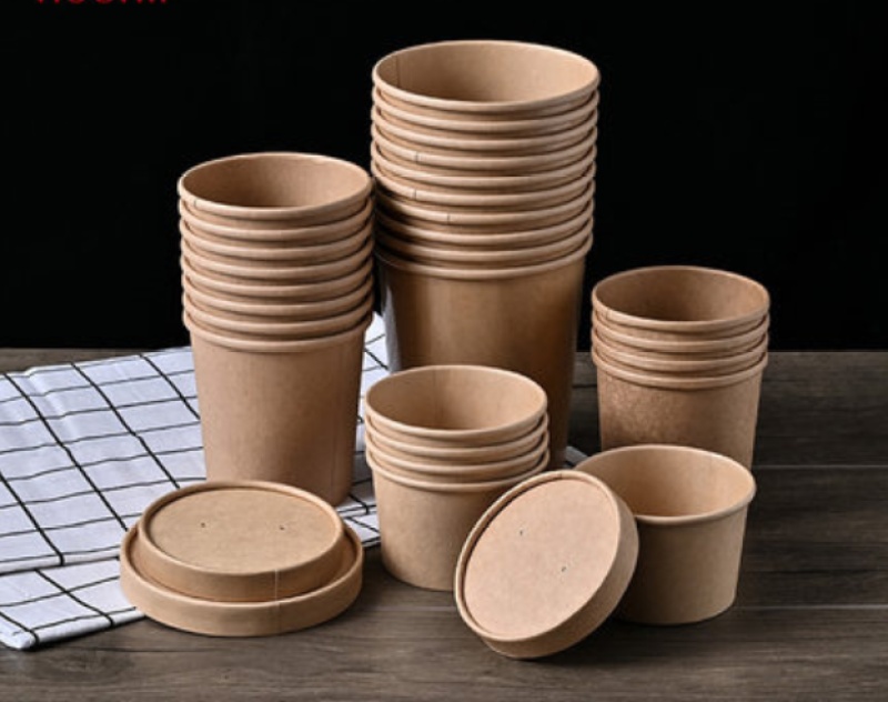 disposable kraft paper porringer porridge bucket takeaway dessert packaging lunch box with lid paper bowl soup cups soup bowl