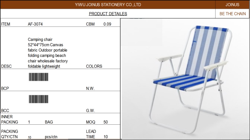 Camping chair 52x44x75cm Outdoor portable folding camping beach chair wholesale factory foldable AF-3074