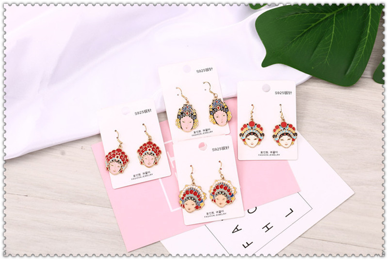 national style earrings sword horse dan peking opera face earrings girls cute eardrops ear studs earrings