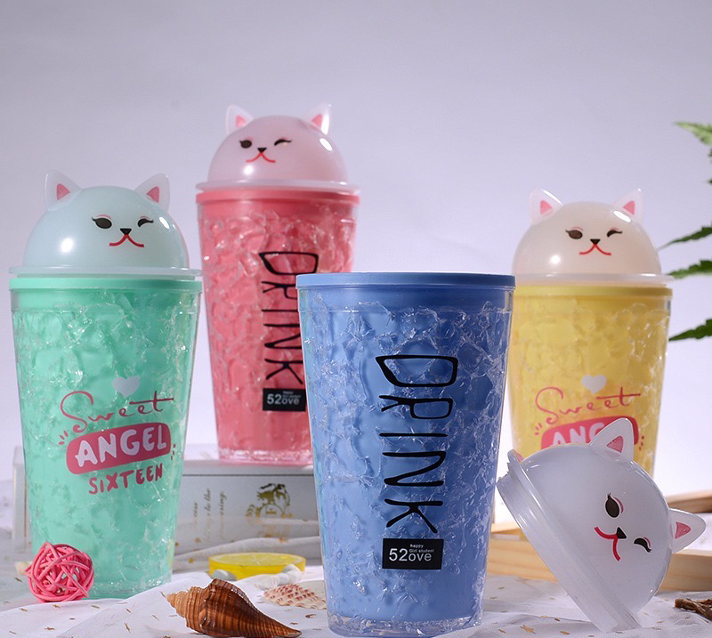 About Product:New cartoon cathead summer ice cup with straw student handy cup advertisement children's water cup ice cool cup double layer