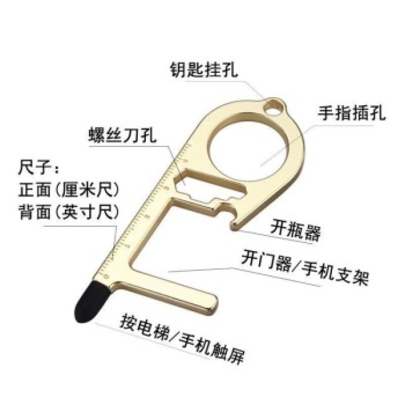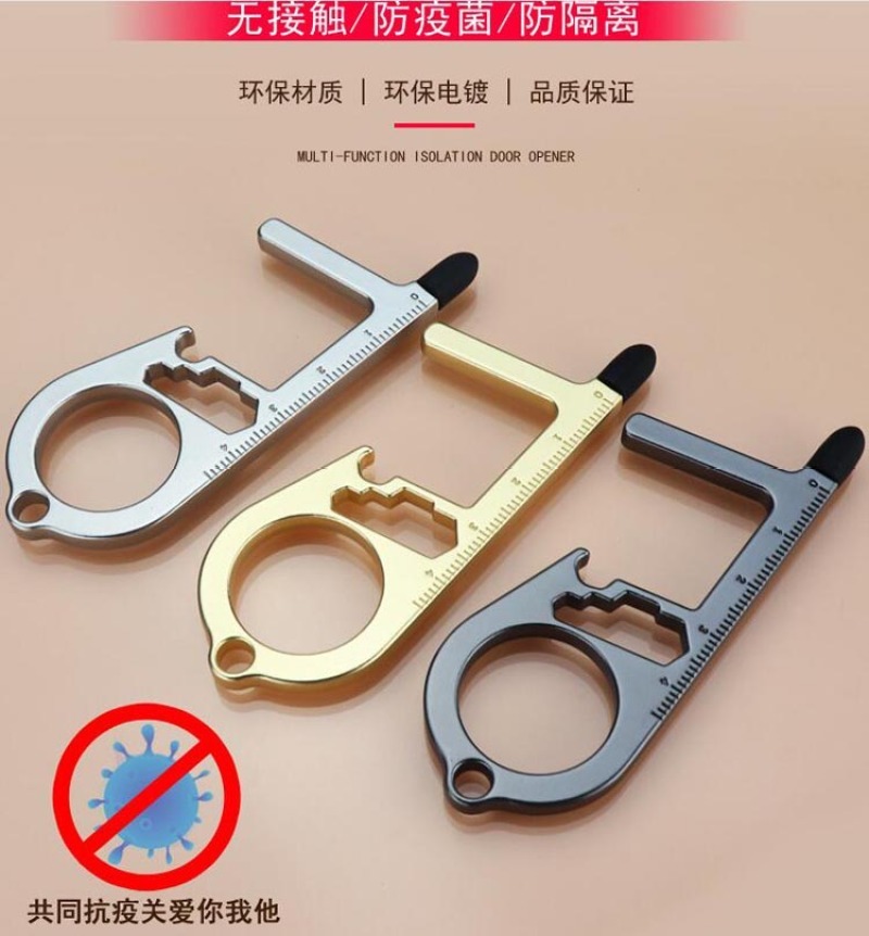 Yiwu Factory Antibacterial Silicone Door Opener Touch Screen Mobile Phone Bracket Screen Touchless Epidemic Prevention Multi-Functional Keychain