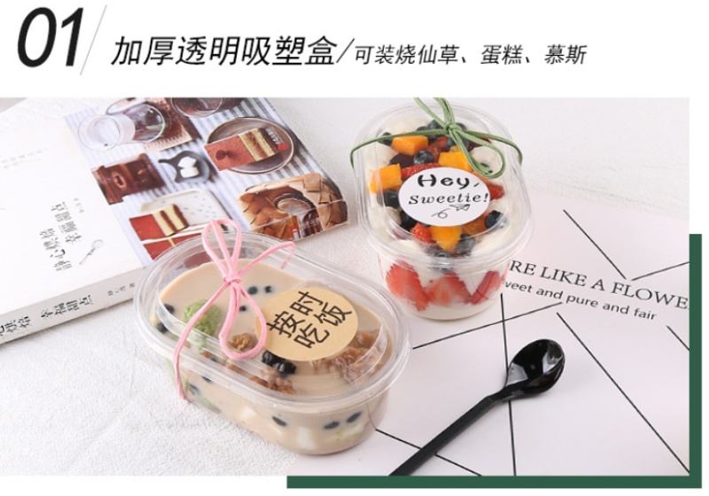 milk tea full bowl grass jelly boxes fruit fishing boxes multi-layer mousse box transparent ice cream box