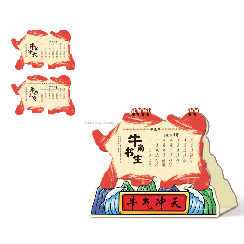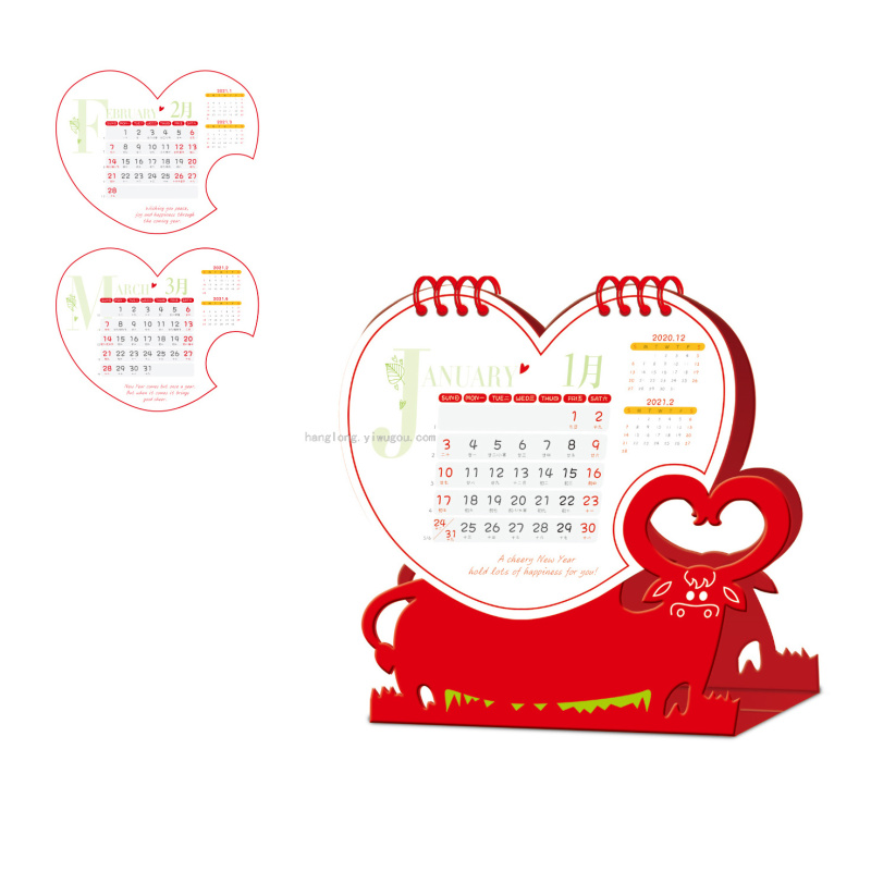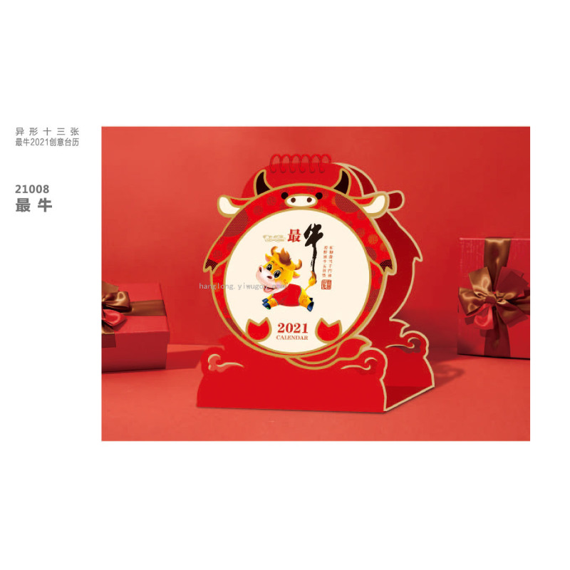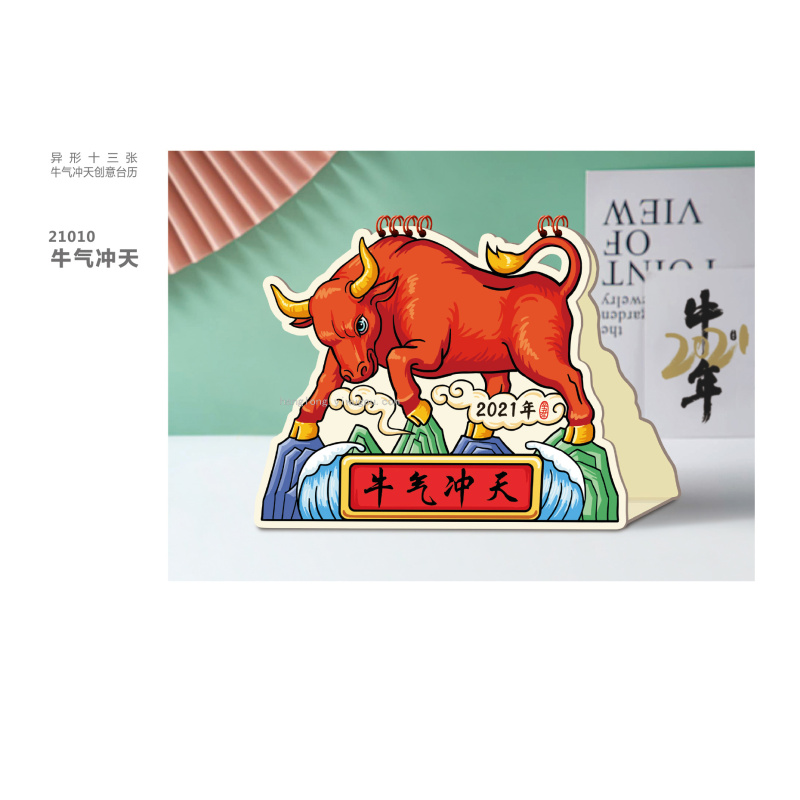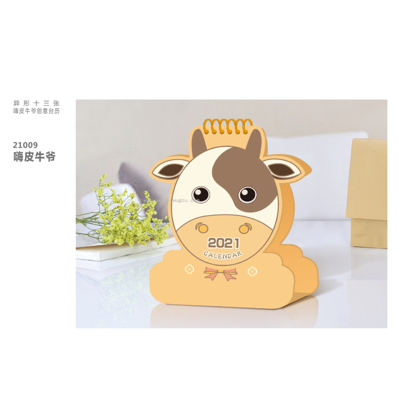Special-Shaped Creative Cartoon Year of the Ox 2021 Desk Calendar