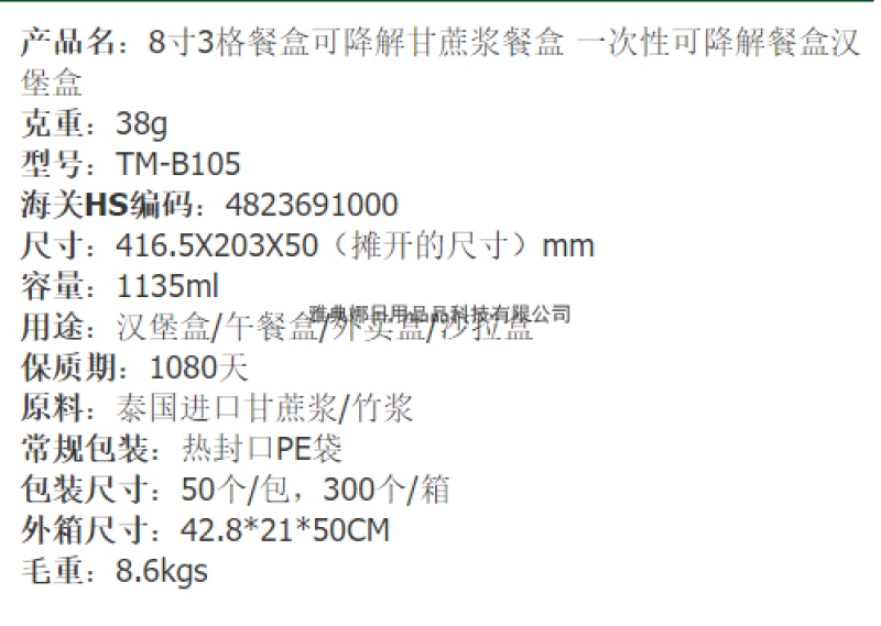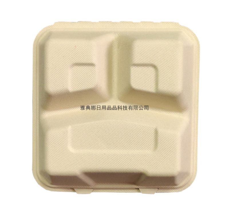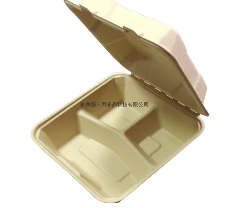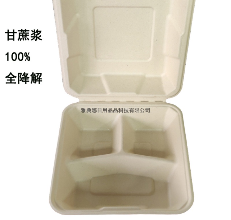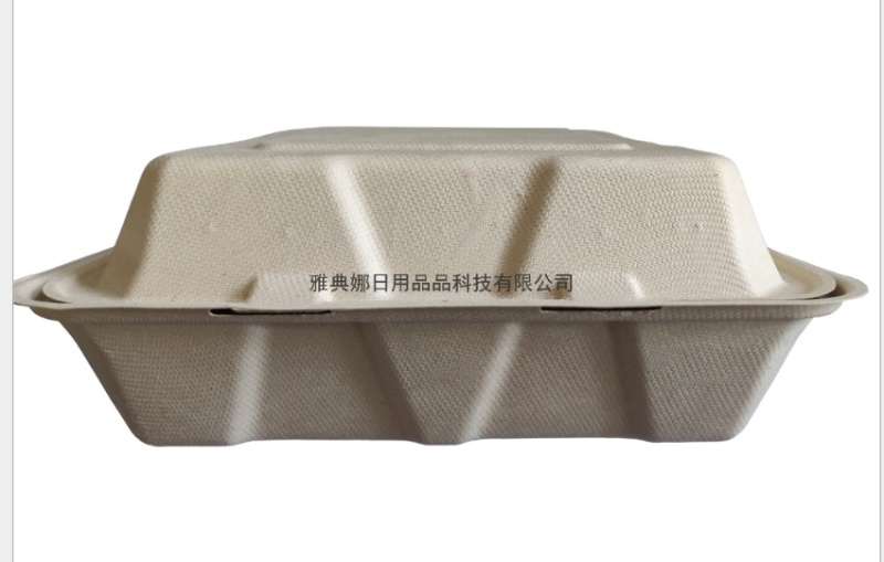 8-inch 3-grid lunch box degradable sugarcane pulp lunch box disposable lunch box hamburger box