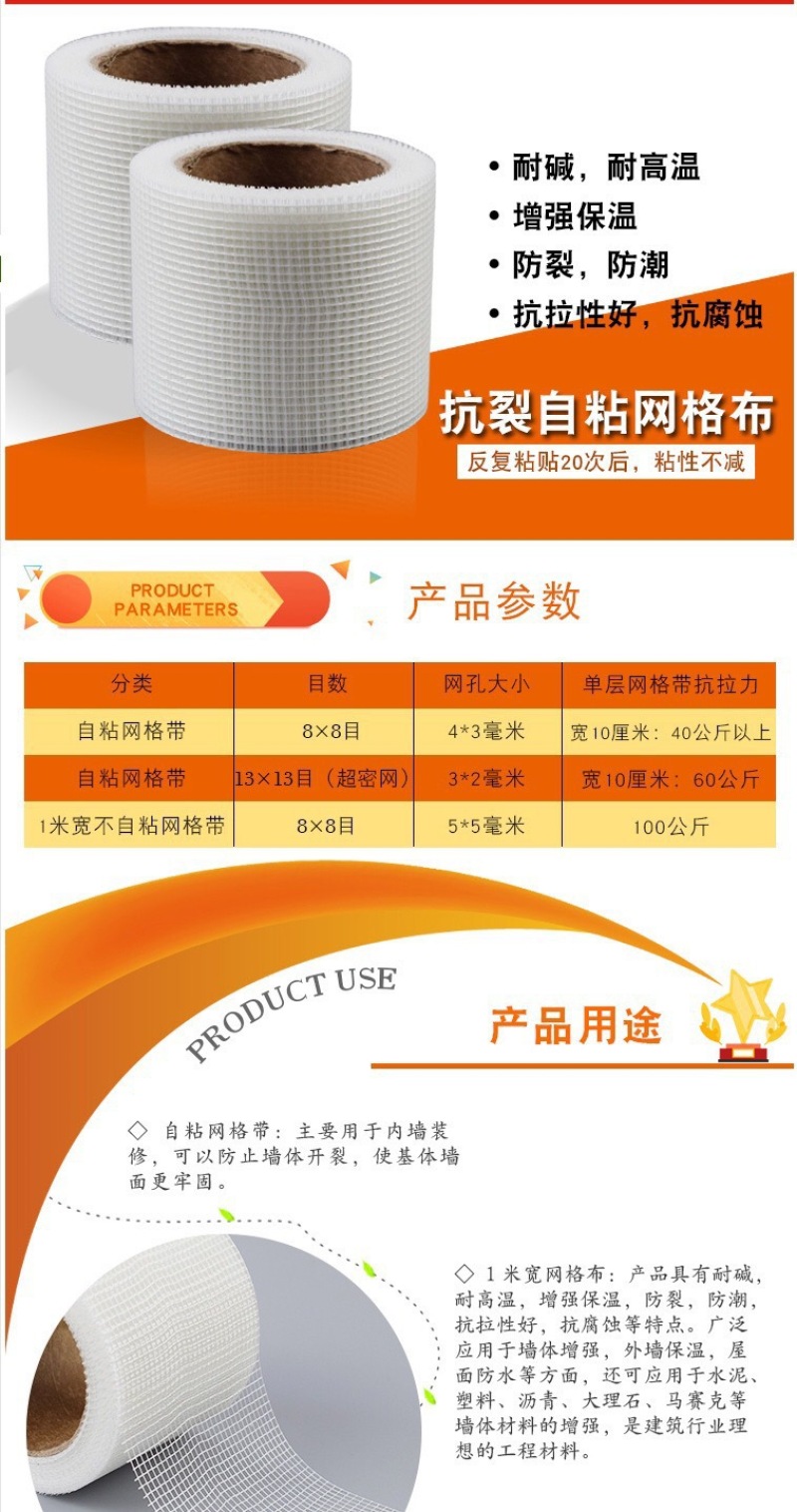 Factory Direct Sales Grid Tape, Joint Band, Fiberglass Mesh, Grid Tape