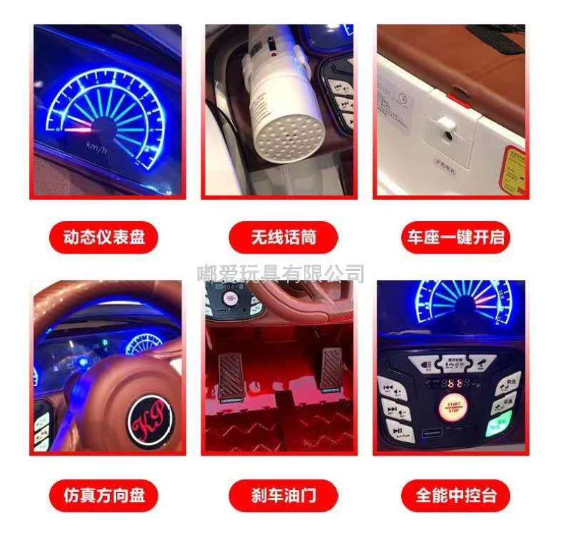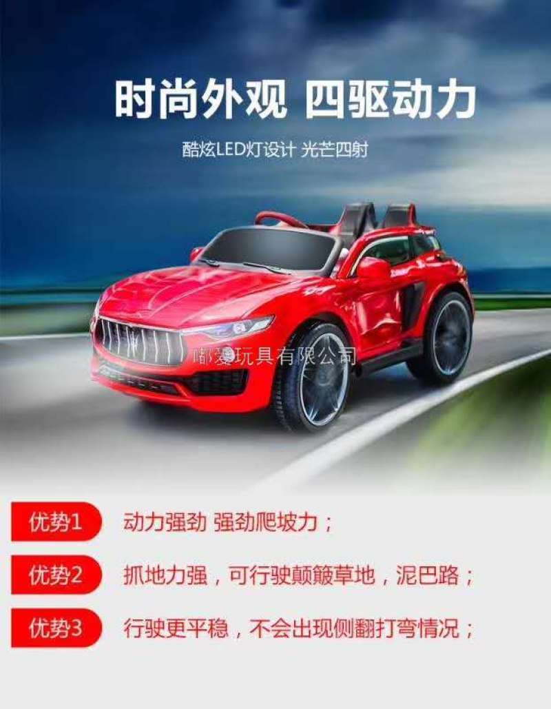 , Bluetooth remote control, mobile battery rechargeable, 12V battery four-wheel drive power, with a portable pull rod and rear training wheel. Remote control of mobile phone.