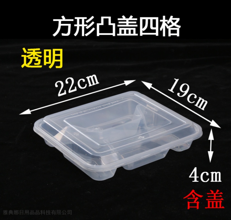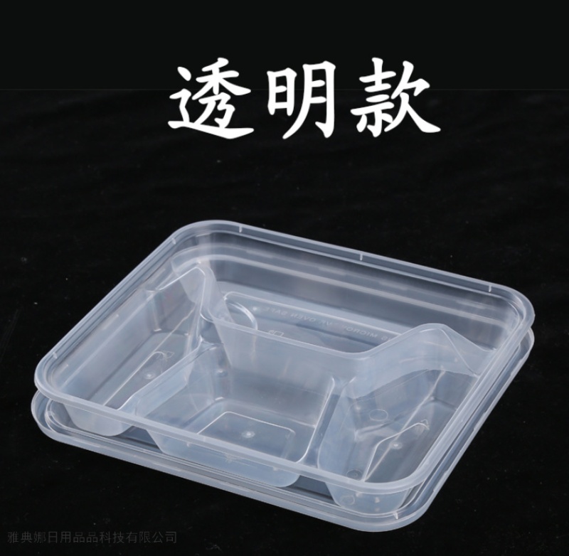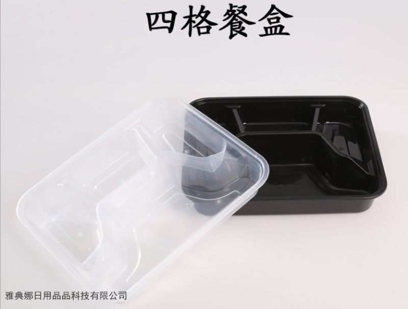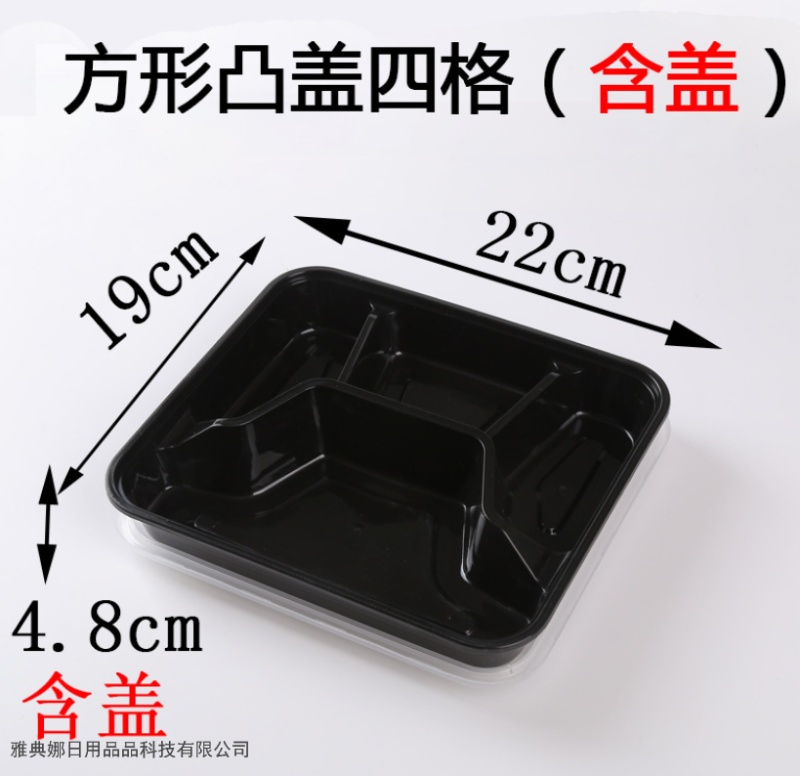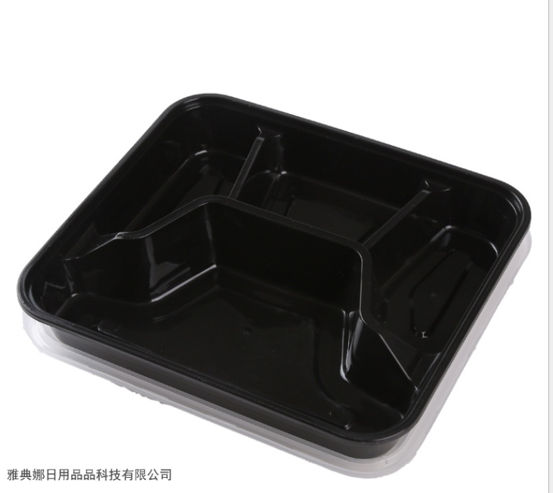 disposable square three grids and four grids five-grid lunch box packing takeaway thickened fast food box transparent black