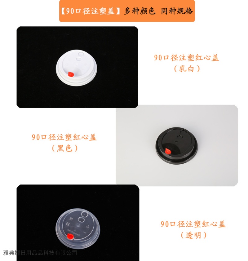 disposable thickened pp90 caliber milk tea cup lid red heart plug one-piece injection cup lid universal leak-proof