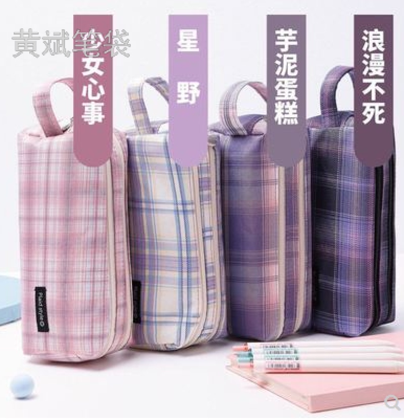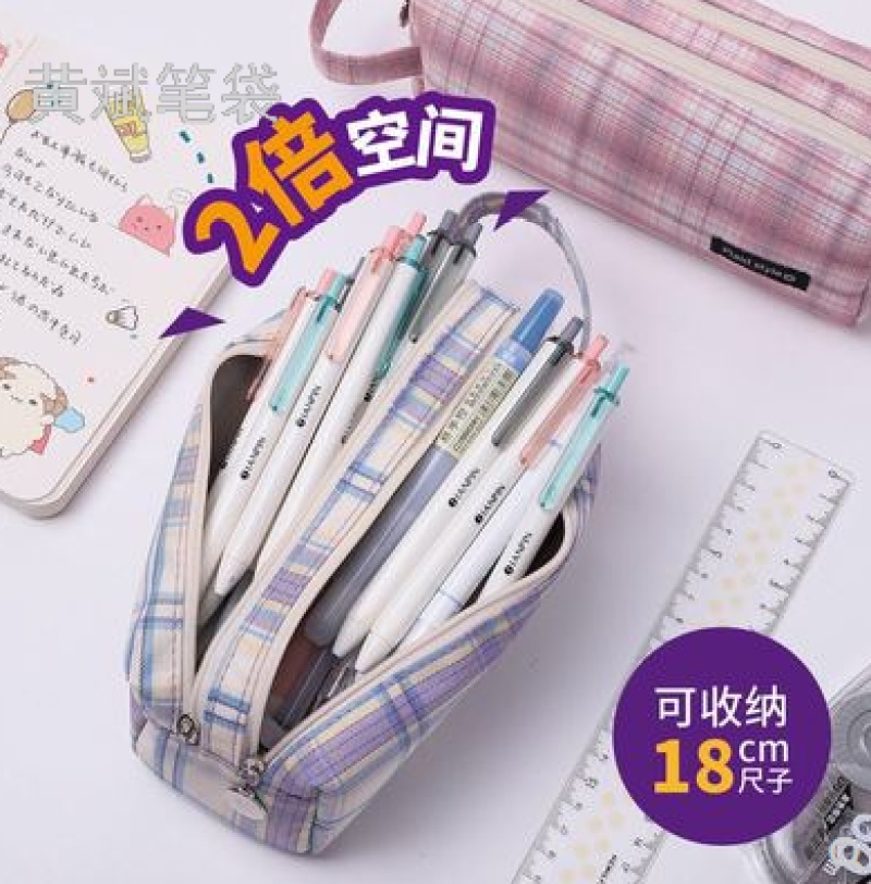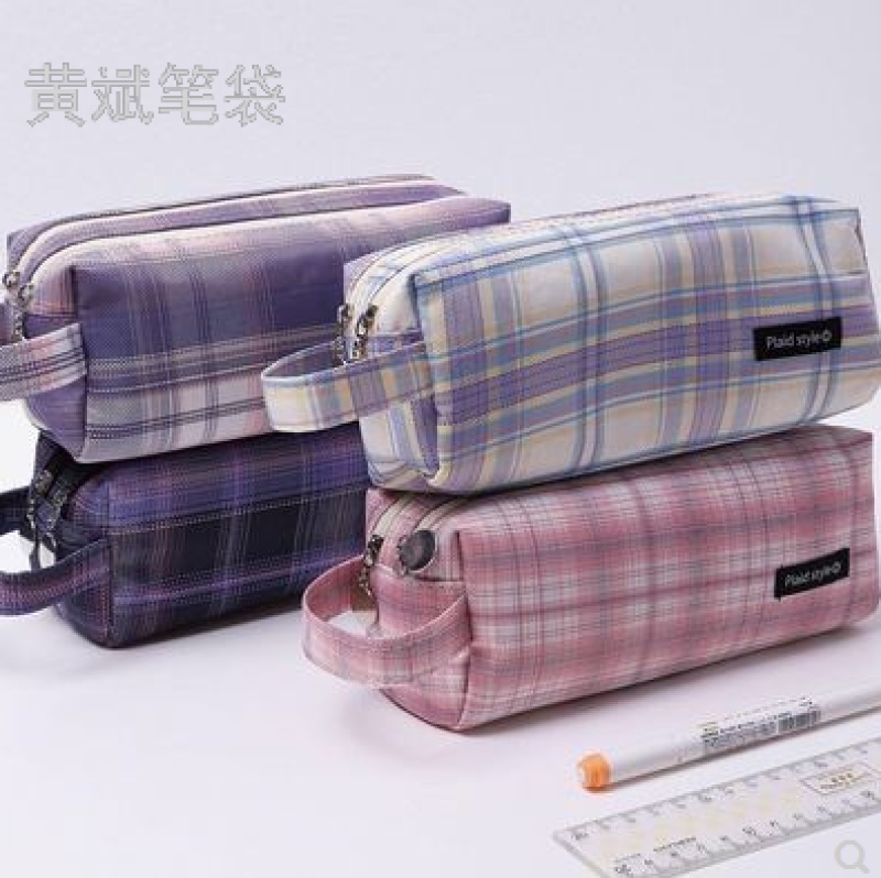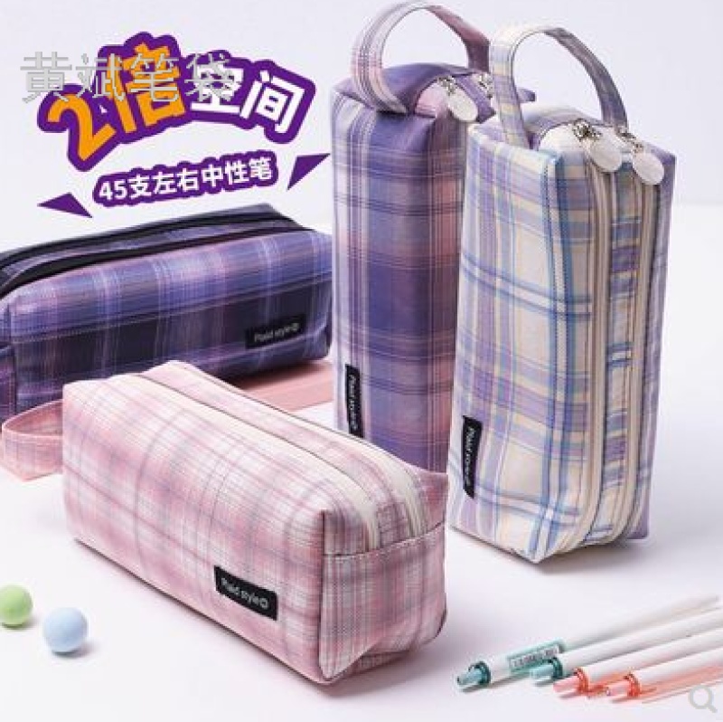 factory direct sales new student double zipper large capacity pencil case simple pencil bag stationery box