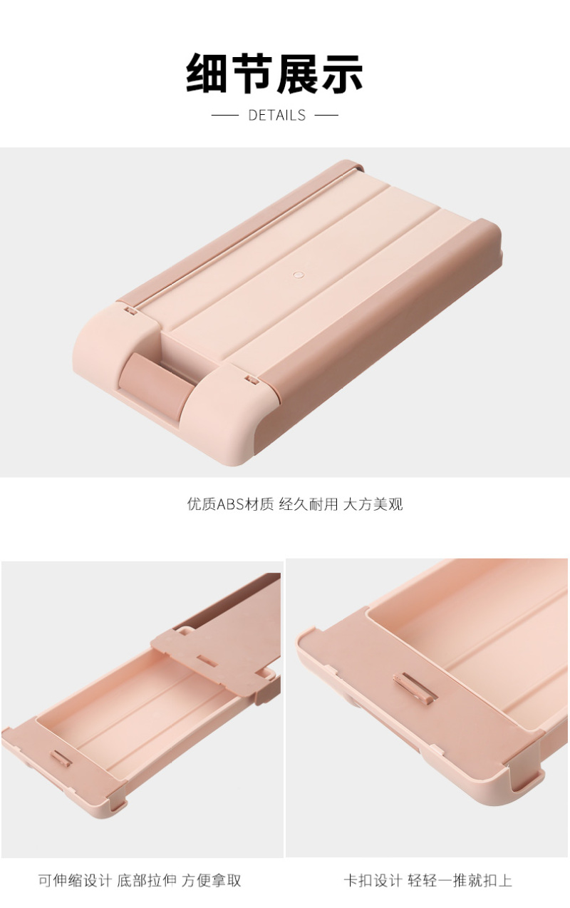 【产品颜色】:蓝色、粉色、白色 【产品尺寸】:29*15*4CM 【产品材质】:ABS+亚克力胶 【包装方式】:白盒 【装箱数量】:48PCS