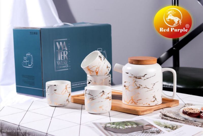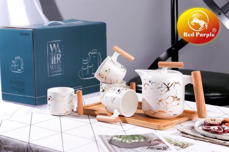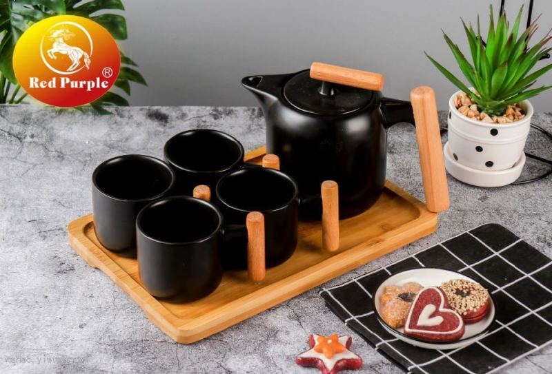 Ceramic Teapot Set with Wooden Chassis