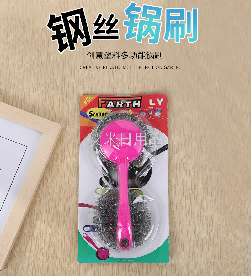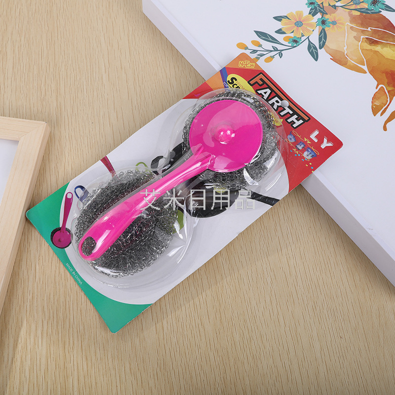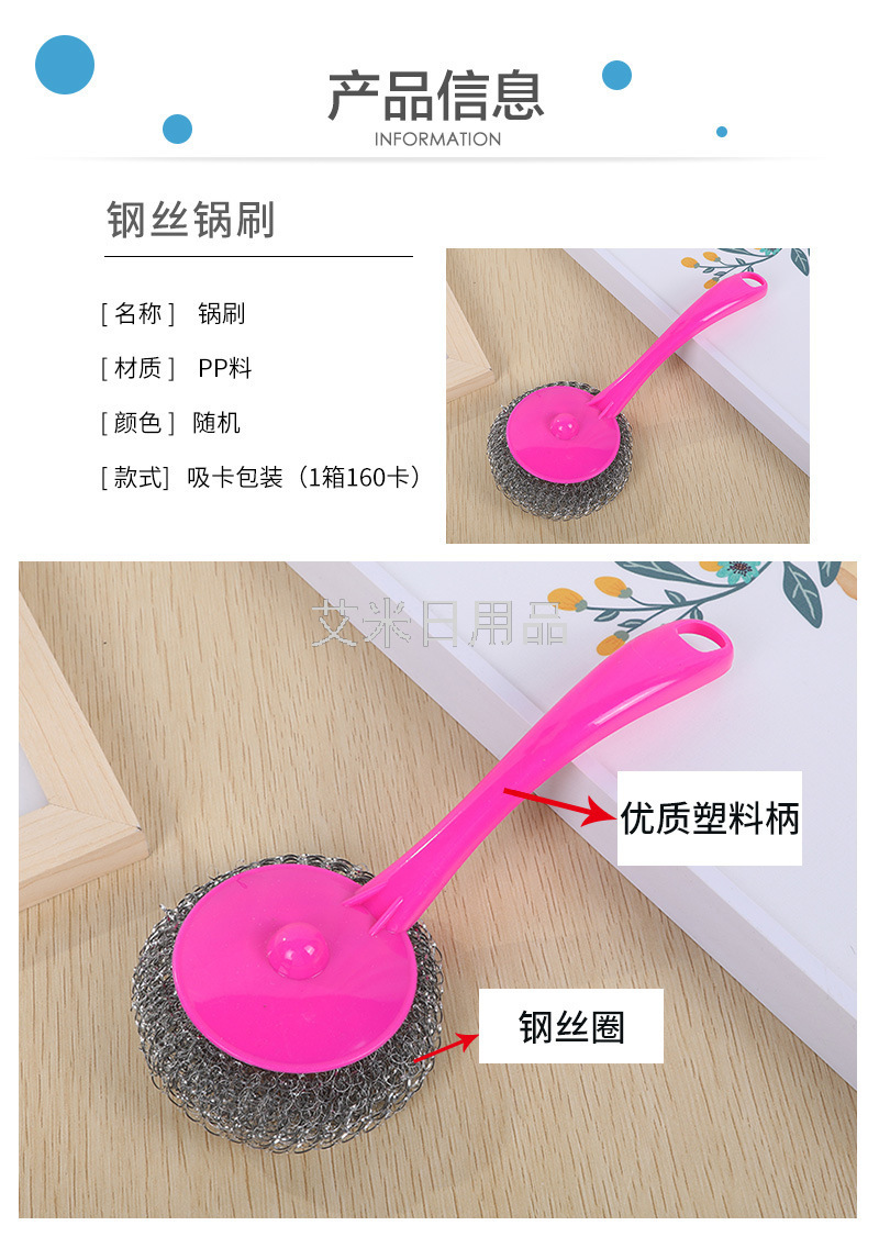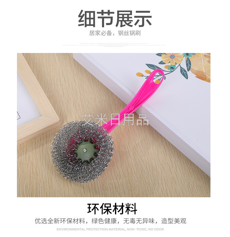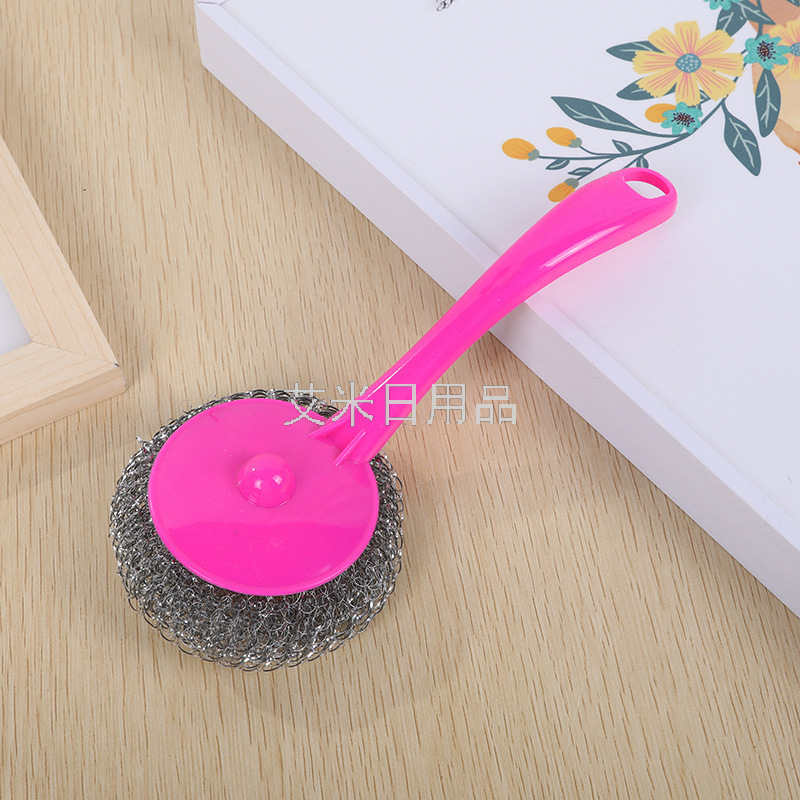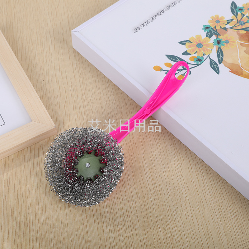Ly-Hanging Removable Kitchen Decontamination Long Handle Steel Ball Dish Brush Sink Cleaning Brush Plum Pot Brush