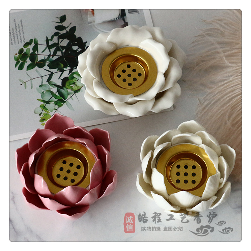 middle east hot sale incense burner electroplating golden ceramic lotus petal incense burner incense burner crafts fashion personality decoration