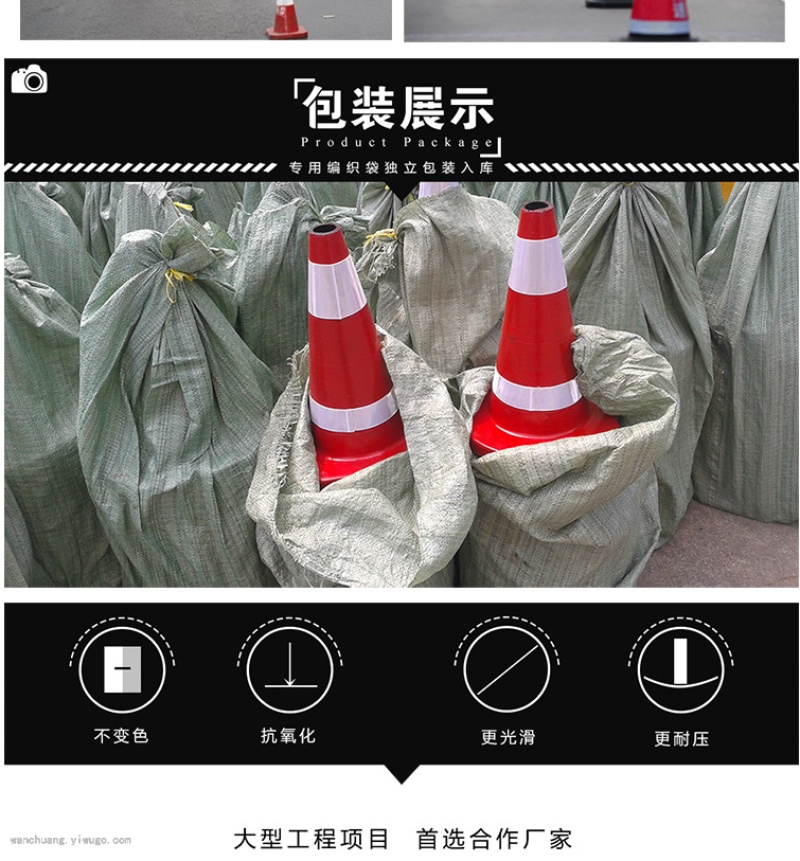 1. Road coneAlso known as roadblocks, they are used to place in the middle of the road, in dangerous areas, and at road construction sites, etc. They are set in places where temporary traffic separation is needed, guide traffic, guide vehicles around dangerous sections, protect construction site facilities and personnel, and other places around or other appropriate locations. They are usually used in urban intersection lanes, highway maintenance, traffic police enforcement, road administration enforcement, hotels, residential communities, sports venues, dangerous areas, road construction, and other sections. 2. Road cones are labeled.Reflective MaterialThe road signs that are not covered with reflective material. The road signs that are normally used are covered with high-reflective material. 3. European-style road cones are made of hard material.blow moldingPE road cones, American-style road cones use soft PVC road cones.