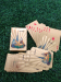 Plastic playing cards with gold foil, 10 decks per box.