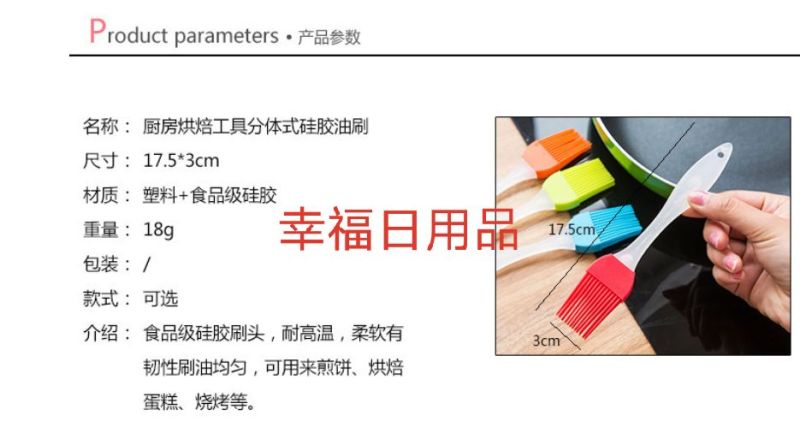 It can be used for pancakes, baking cakes, barbecuing, etc. It is easy to brush oil evenly without waste. The handle is designed to be comfortable and easy to use. The handle and brush head can be dismounted for easy replacement and cleaning.