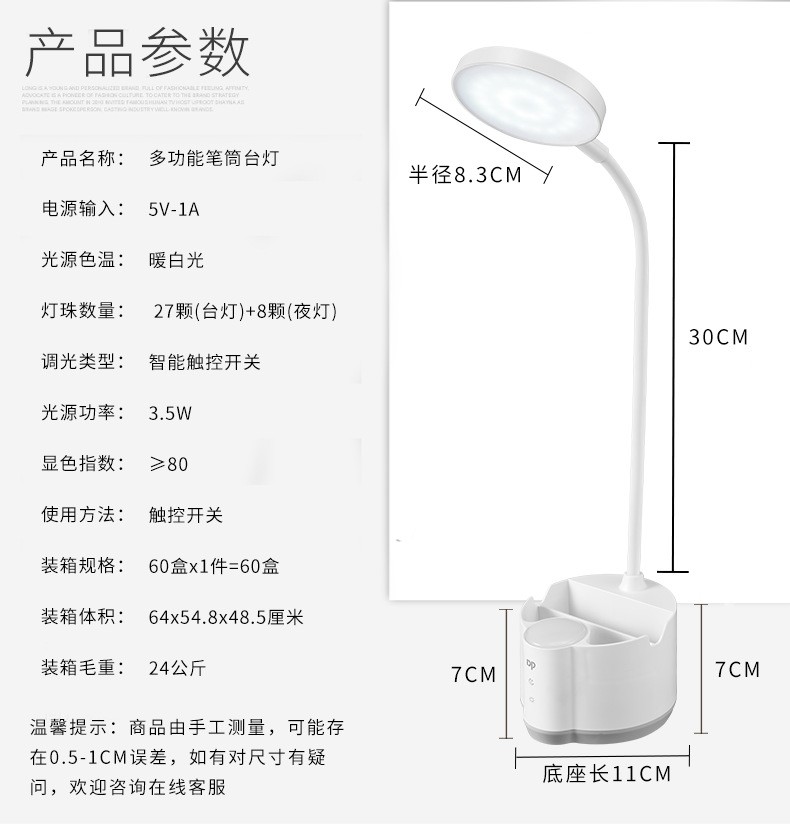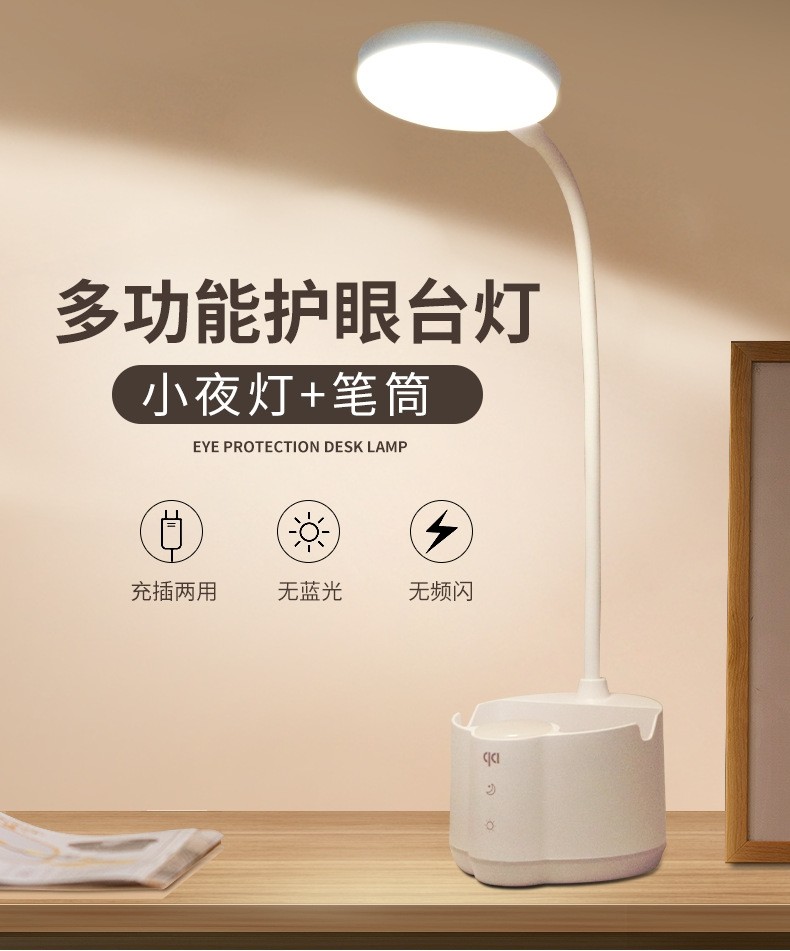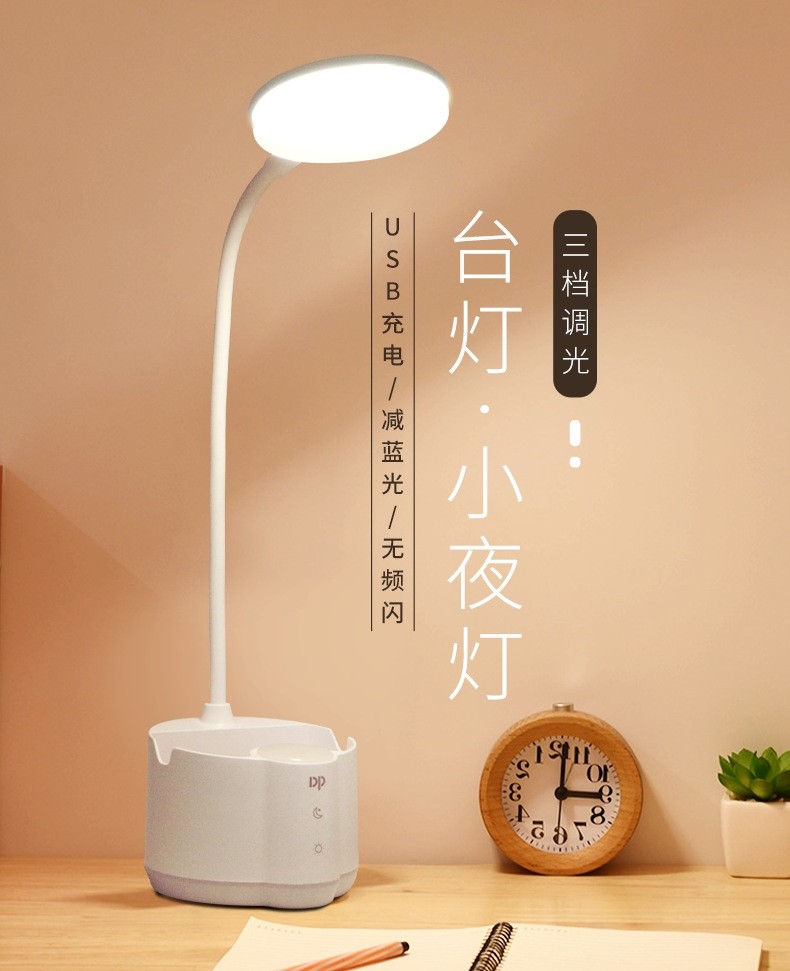 Duration Power 6055 Rechargeable USB Multi-Function Learning Desk Lamp LED Touch Switch Night Light Eye Protection Pen Holder Mobile Phone Holder