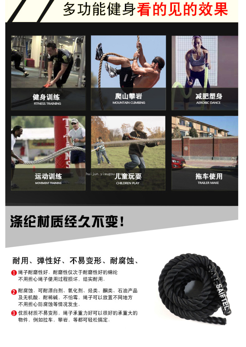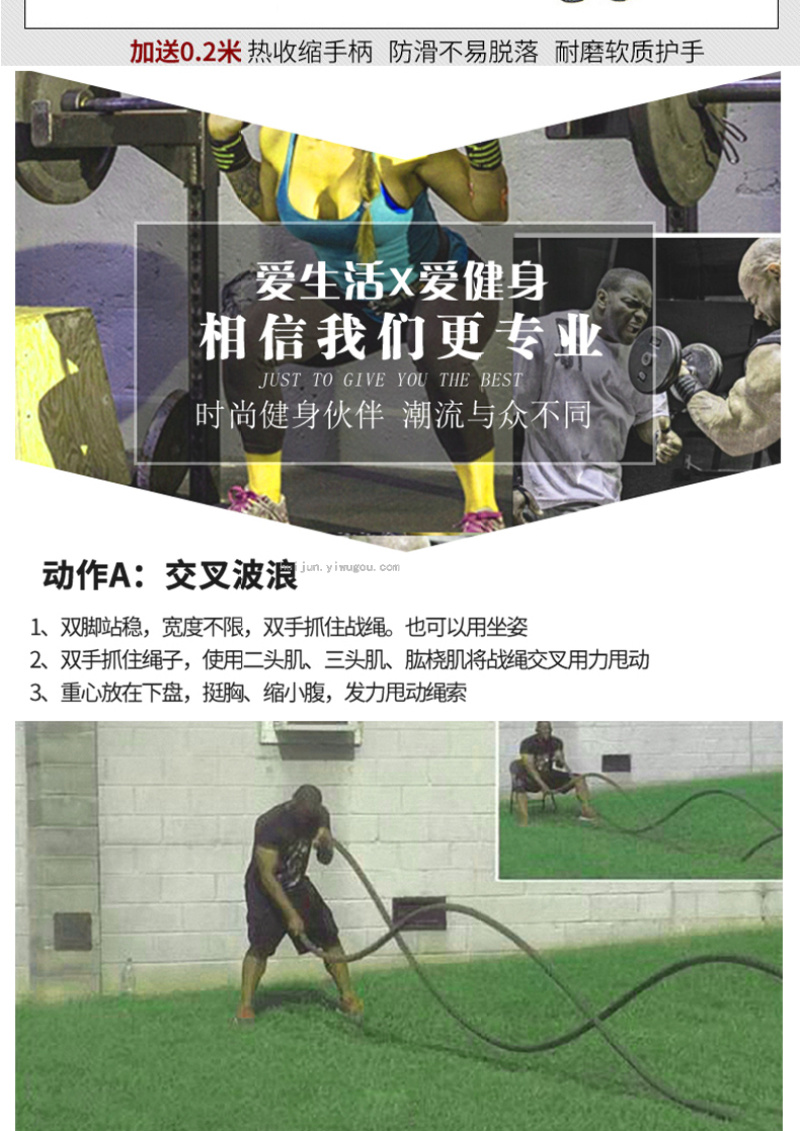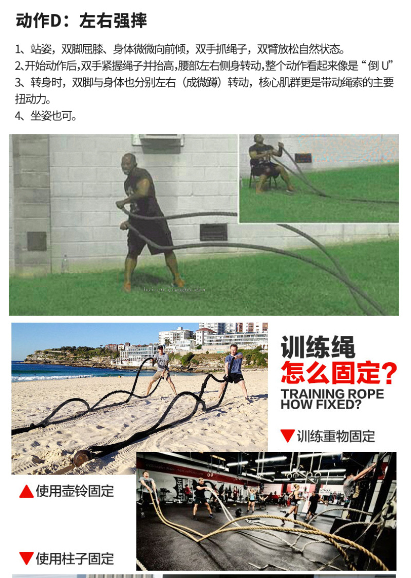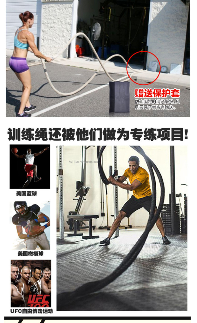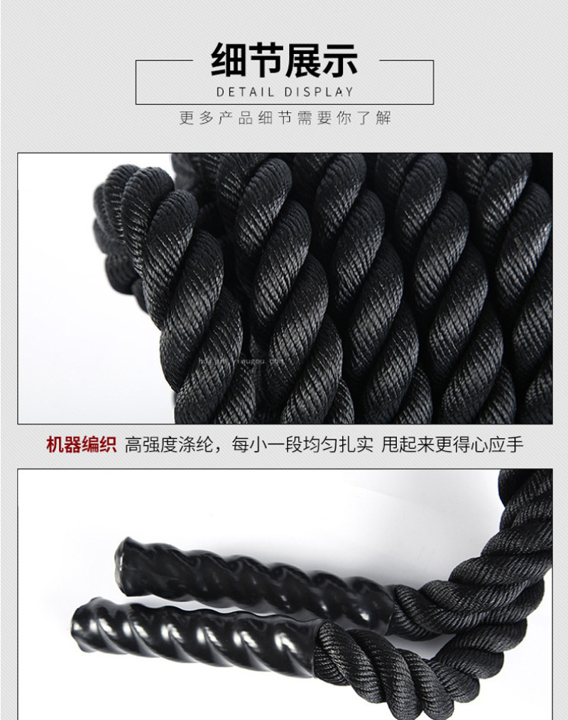 About Product:Diameter 25/38/40/50mm Description: Nylon, Large Thick Rope Jitter Training Is an Essential Item in the Advanced Physical Training Center. Due to the Direction Rhythm, Mode and Waveform during Jitter, the Physical Strength of Each Part of the Body Must Be Cold, Especially in Fighting Training, the Speed and Explosive Force of Boxing Are Greatly Improved.