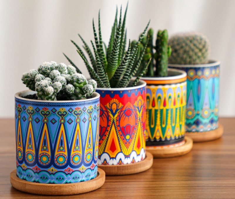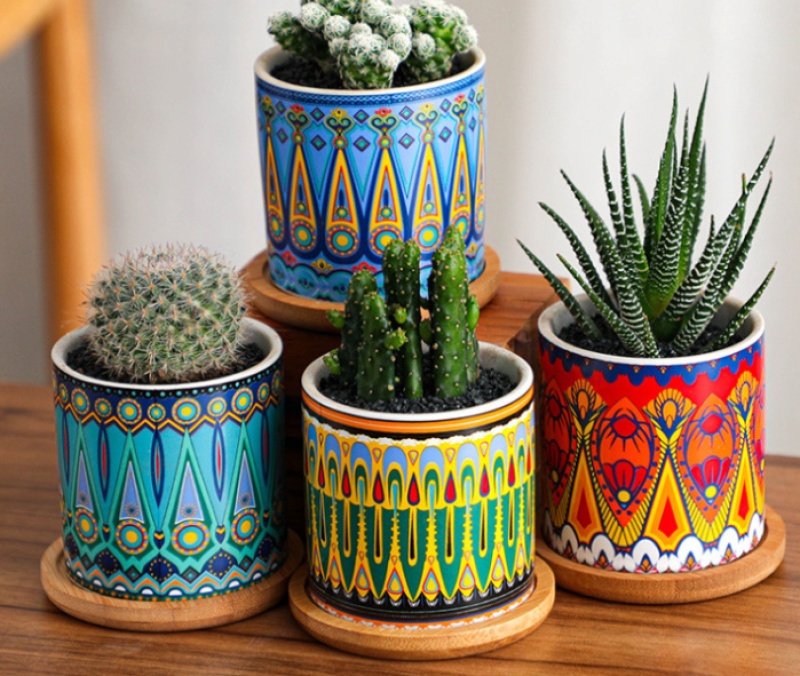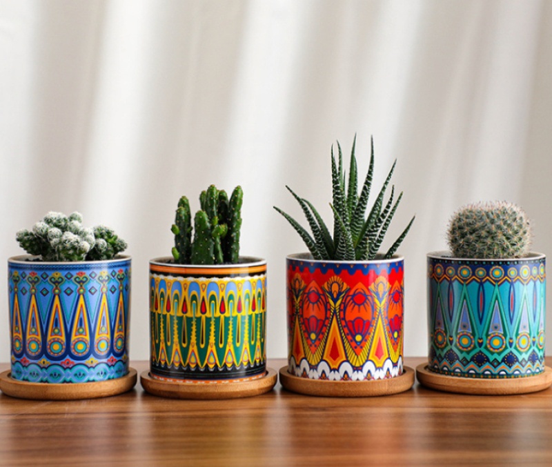 Nordic-style cylindrical ceramic flower pots, colorful ceramic flower pots, simple home plant pots