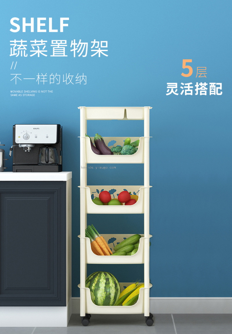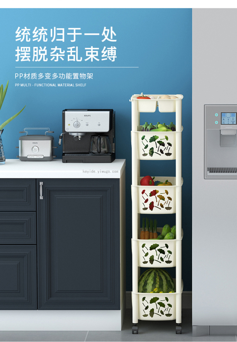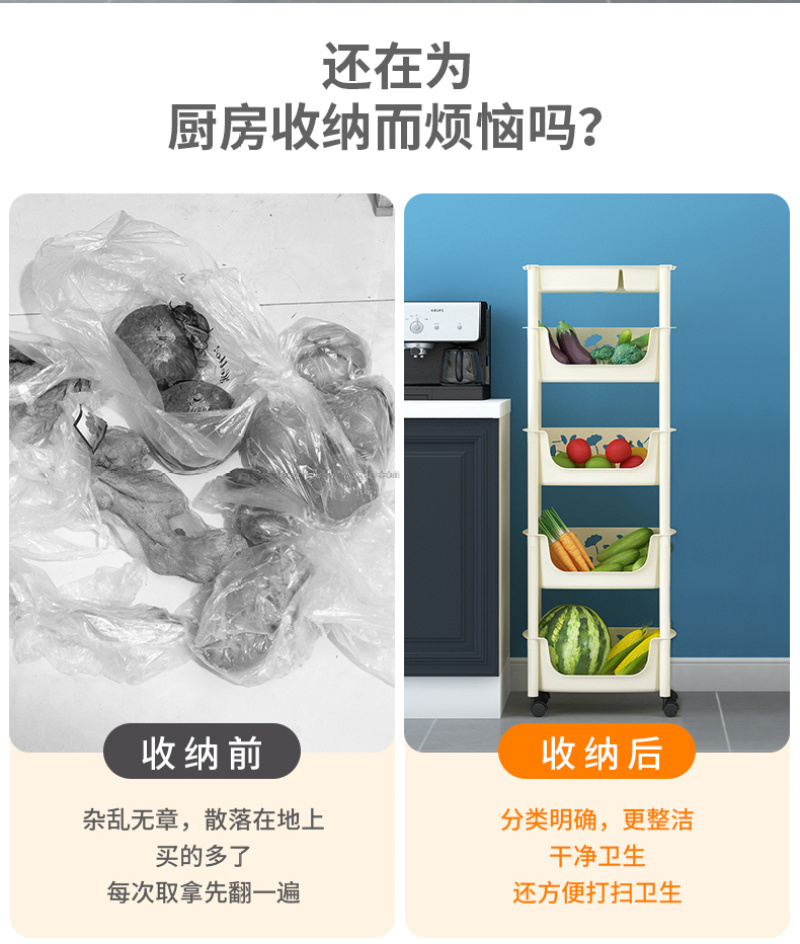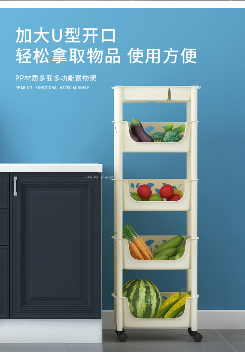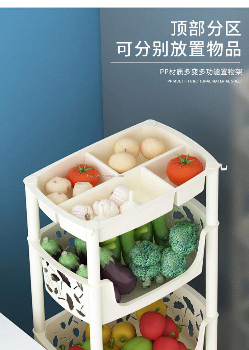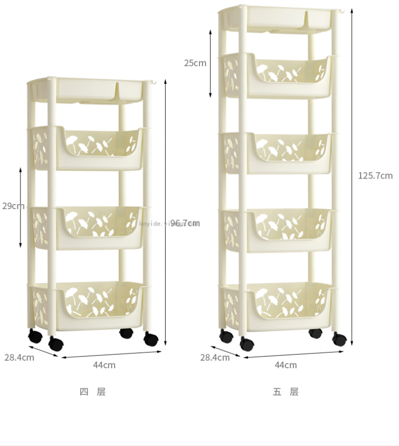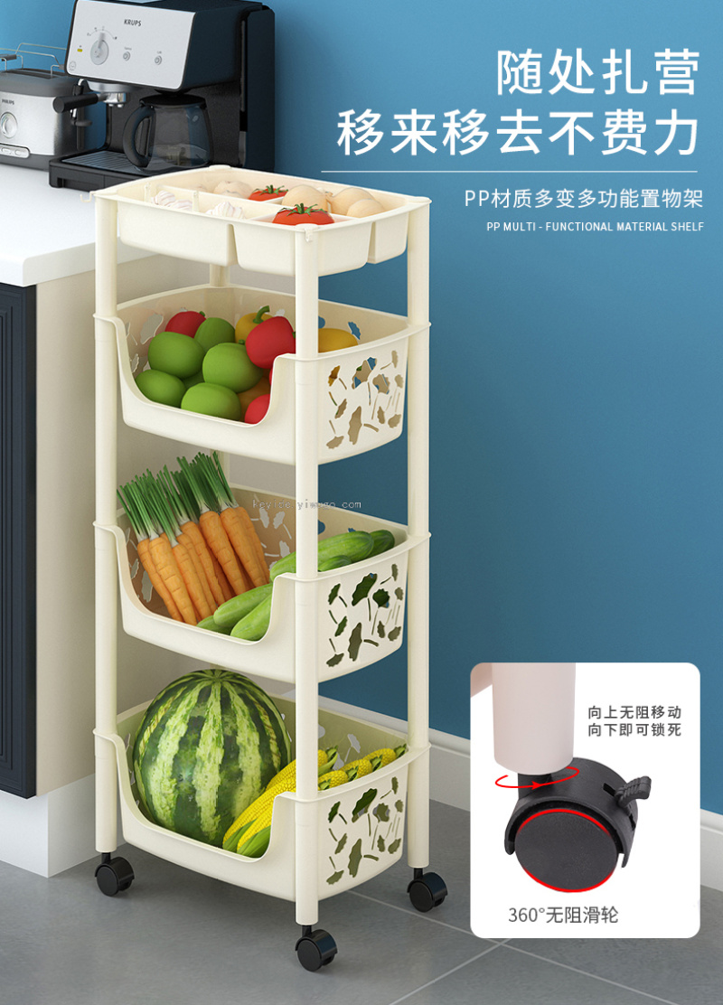 Kitchen Floor Storage Rack Plastic Multi-Layer Vegetable Colander Storage Bathroom Multi-Function Mobile Rack Products