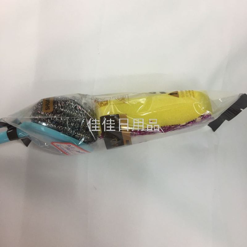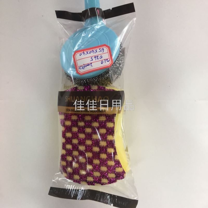 210 Kitchen Cleaning Set Sponge Stainless Steel Cleaning Ball Plastic Handle Three-in-One