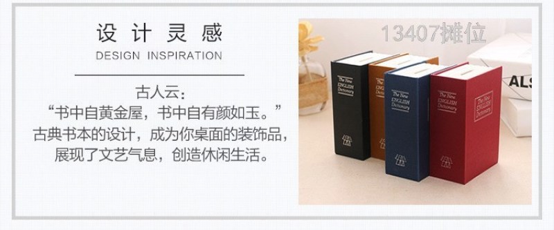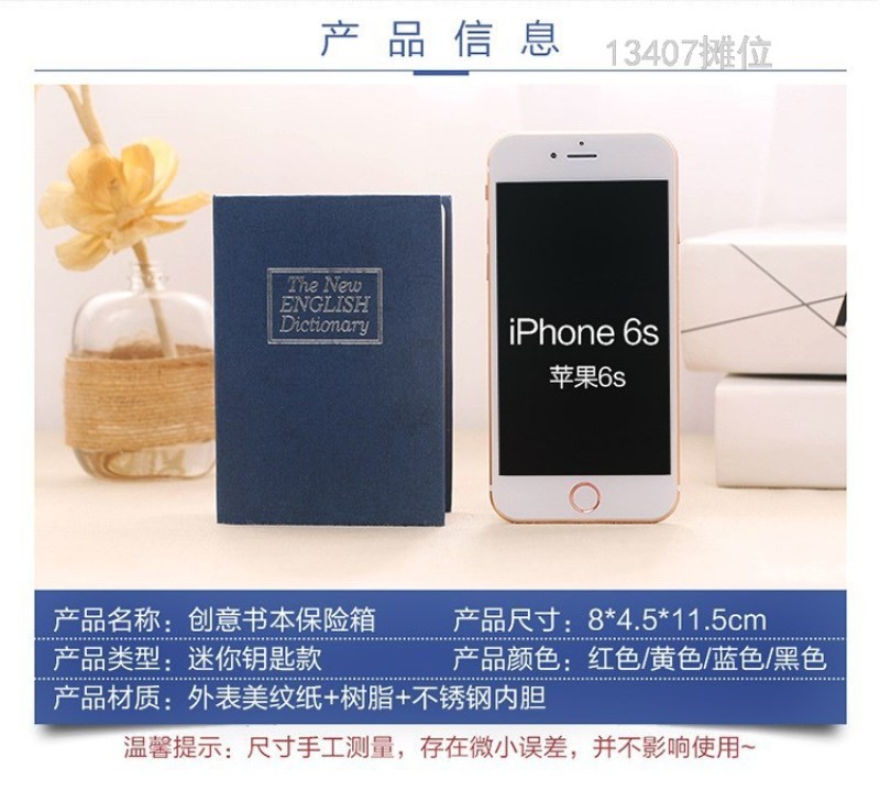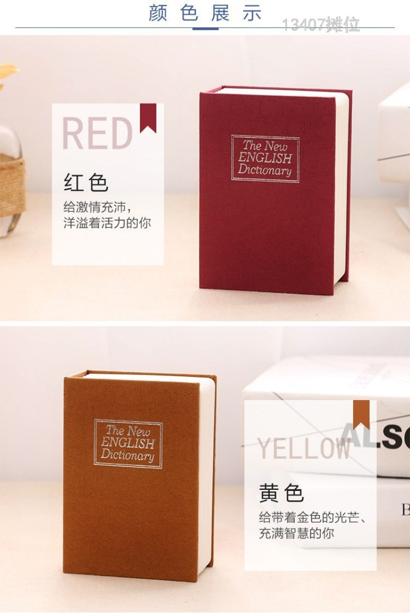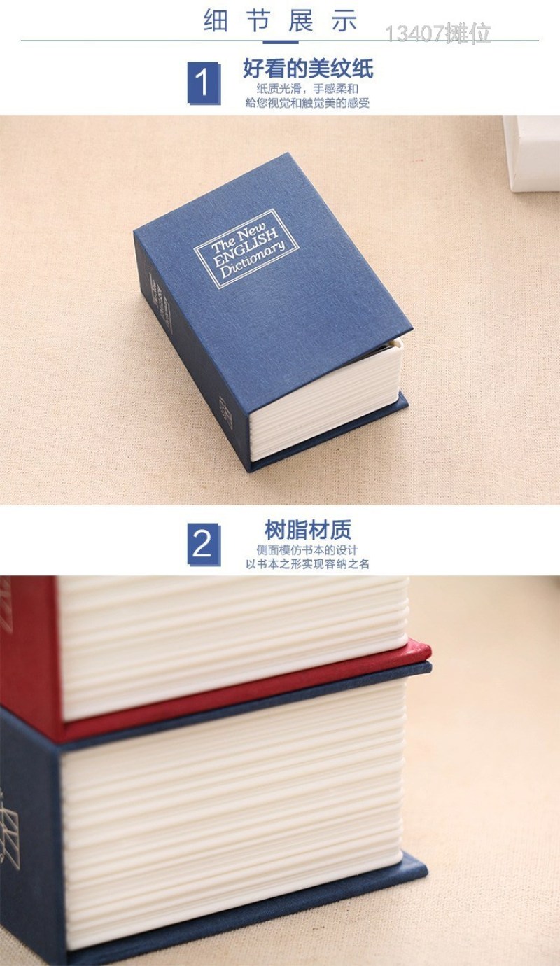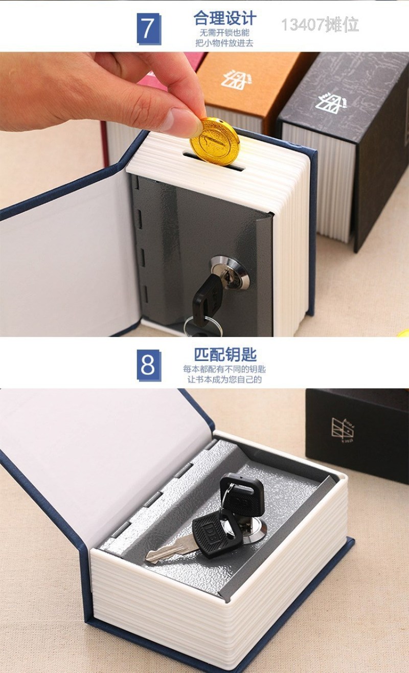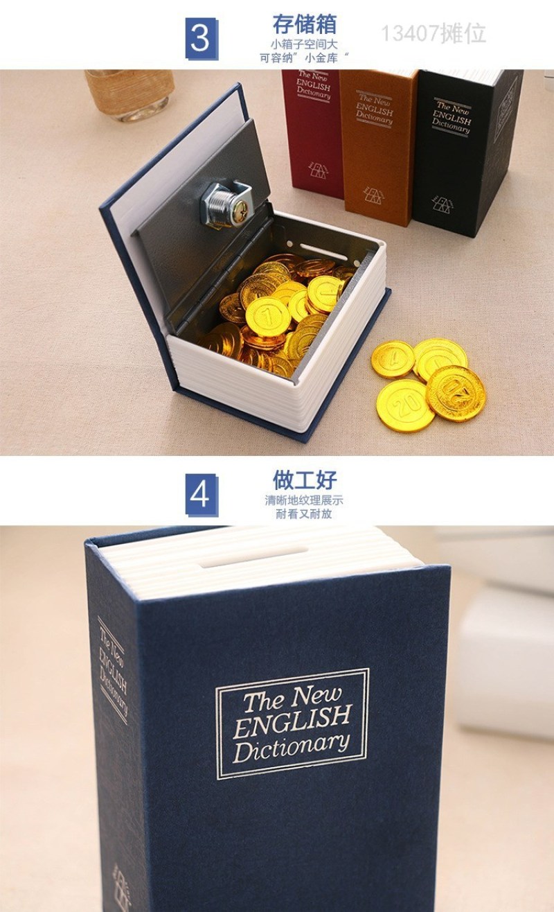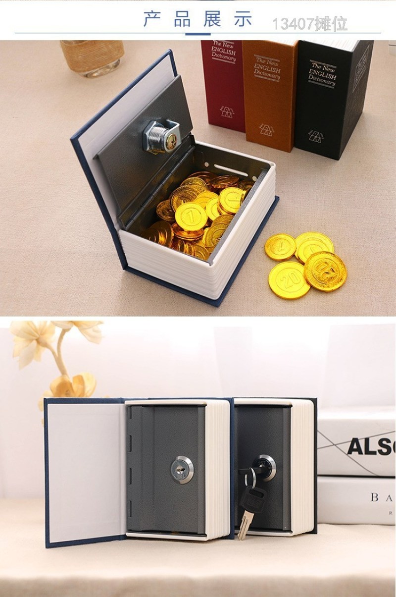 product Name: 13407 shinsen mini small sized simulation book Dictionary book safe deposit box key with lock coin change piggy bank piggy bank