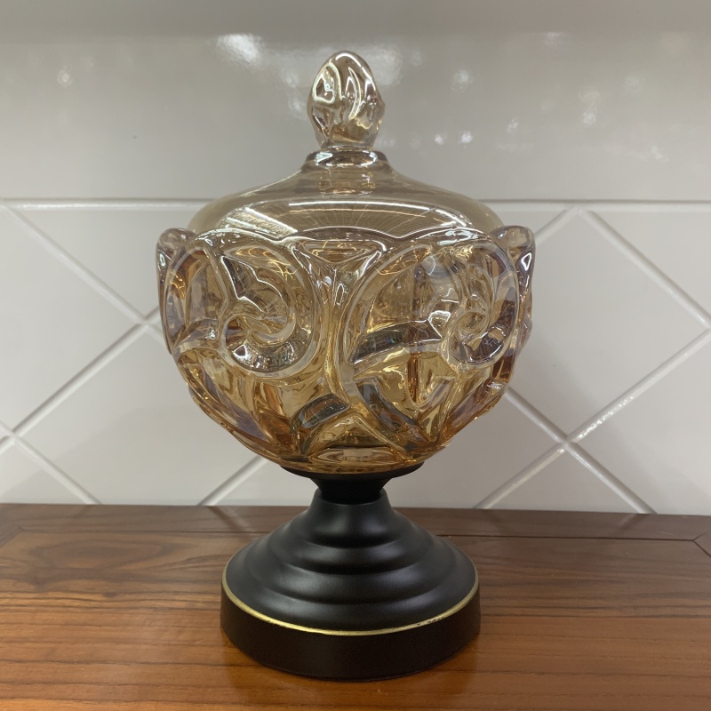 About Product:European entry Lux storage jar decoration home decorations dining table and tea table in living room glass candy box dried fruit storage tank