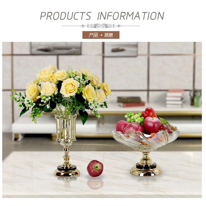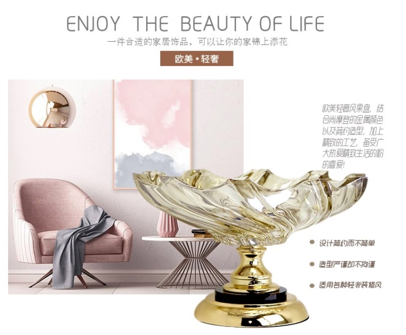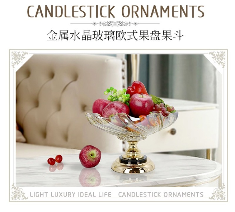 Lead-Free Crystal Glass Fruit Plate Luxury European and American Small Fruit Tray Small European Fashion Electroplated Fruit Plate Multi-Functional Household