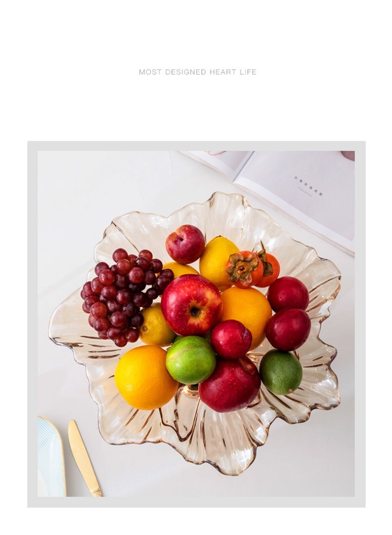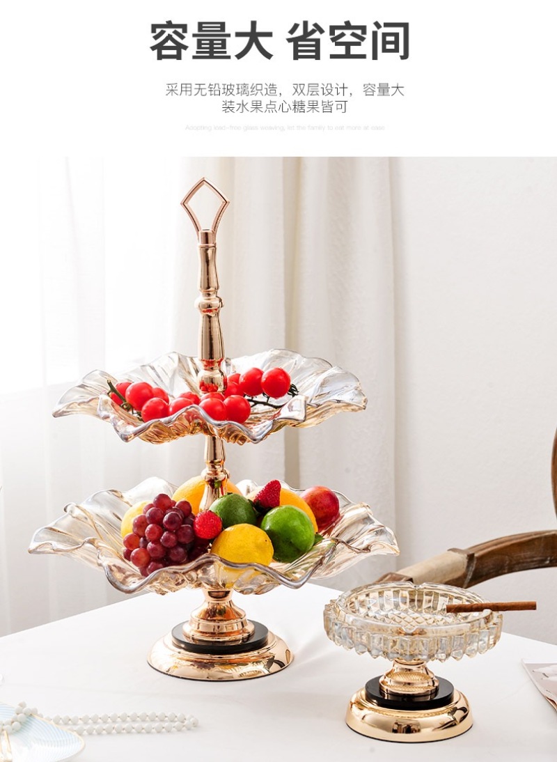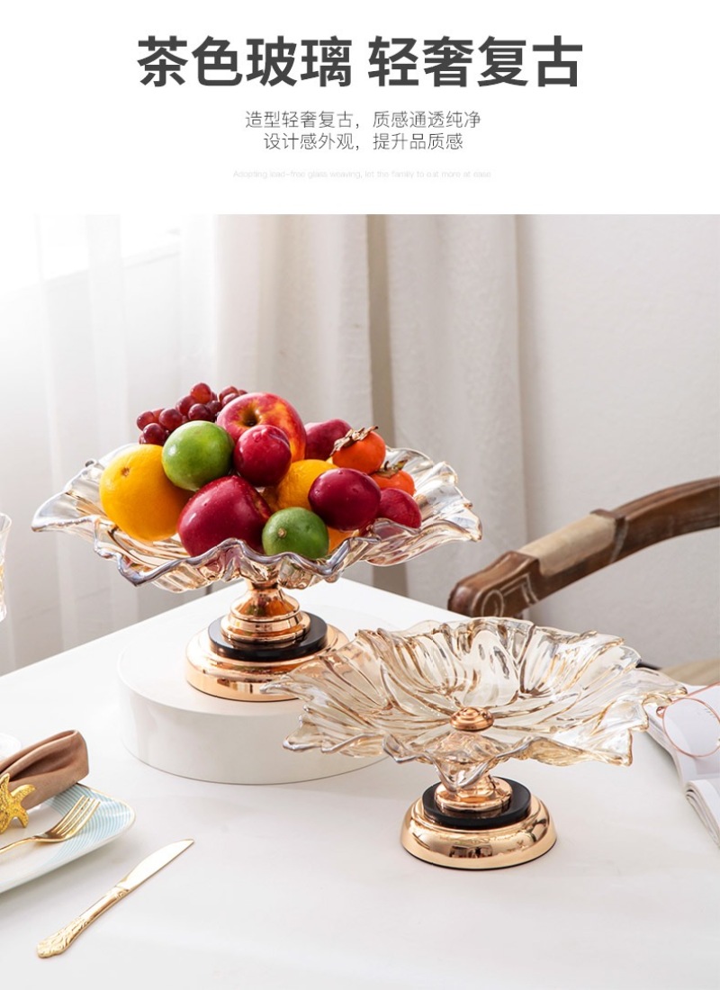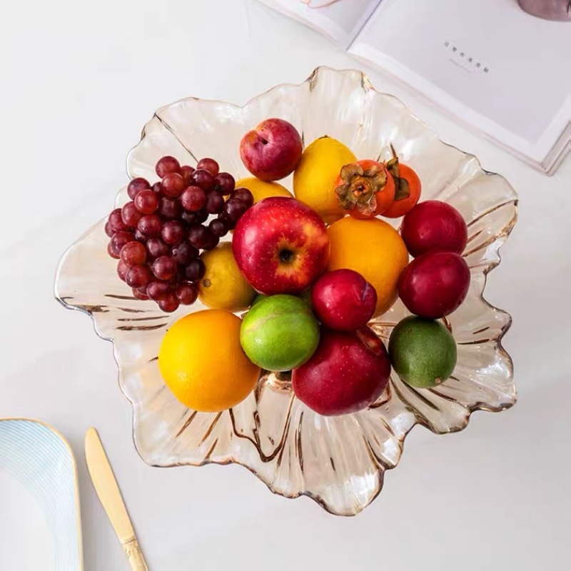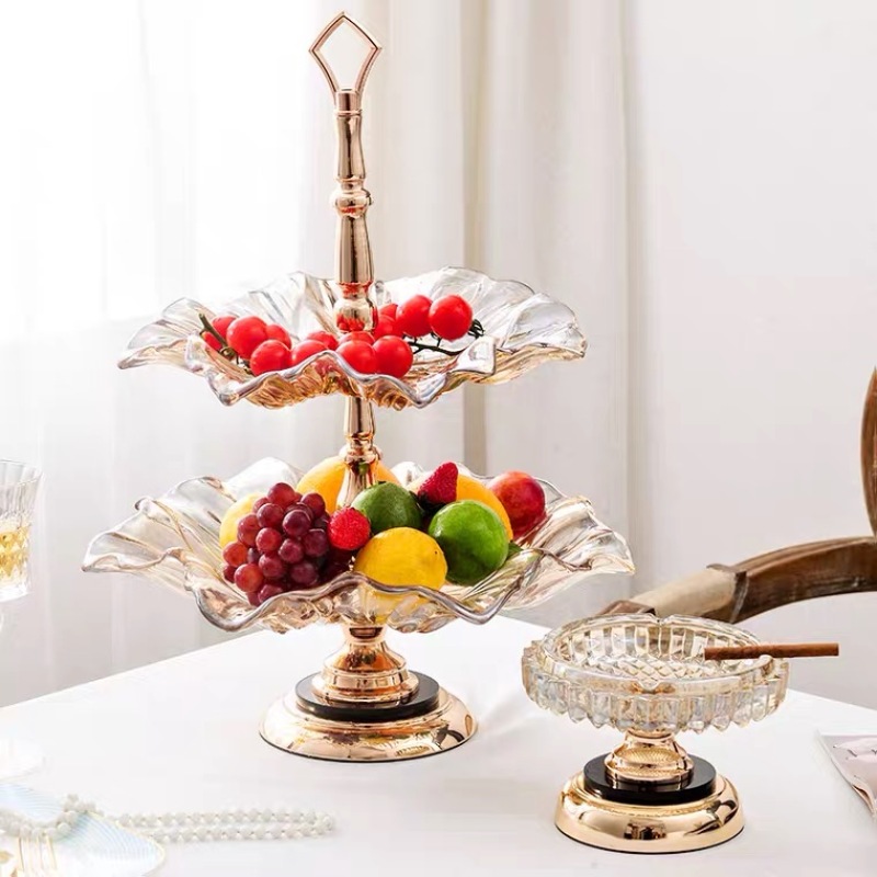 European Fruit Plate Living Room Luxury High-End Three-Piece Set Decoration Creative and Slightly Luxury Modern Coffee Table Household Glass Fruit Plate
