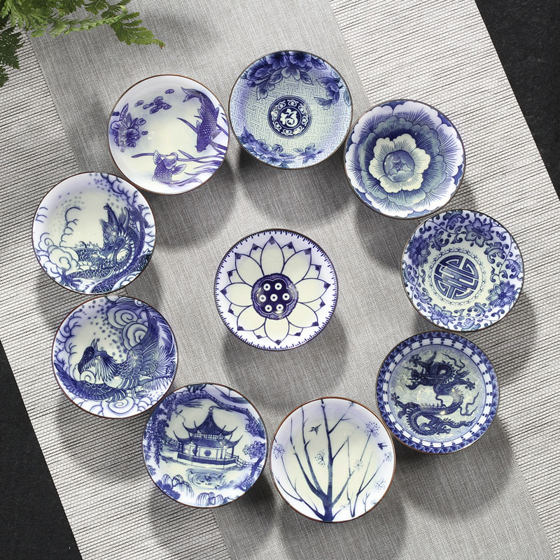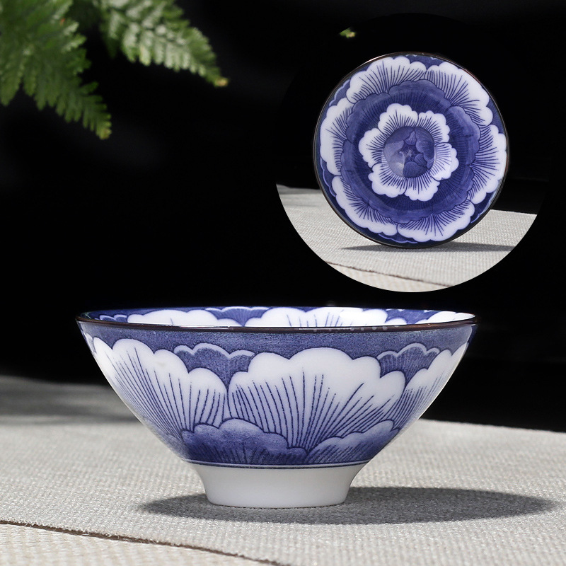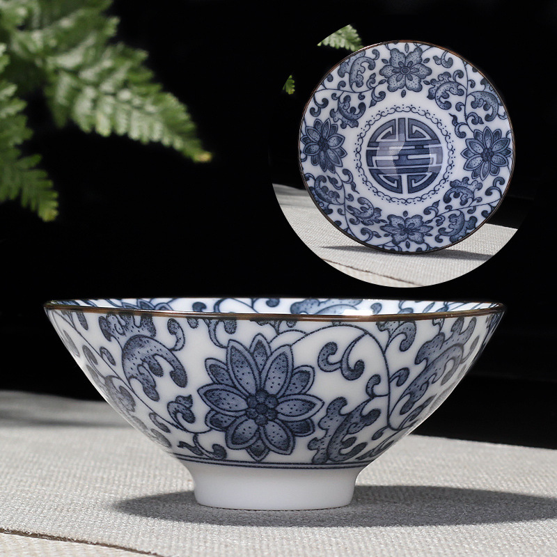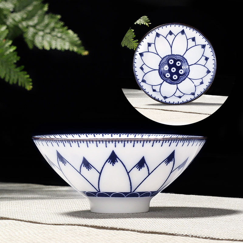 single teacup-white jade-multicolor, large-charm of lotus lotus (blue)